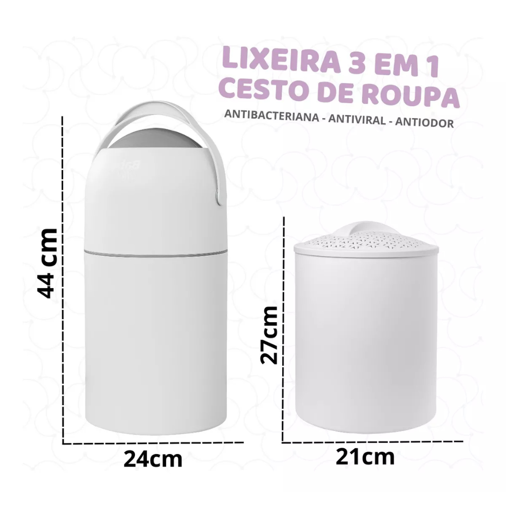 Kit Cesto de Roupa Suja Bebê e Lixeira Anti Odor Antiviral Baby Mel