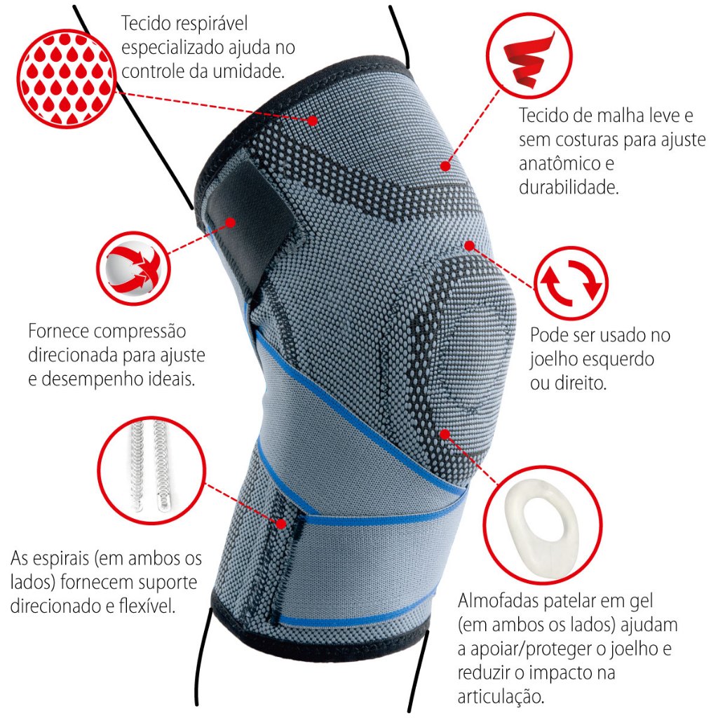 Joelheira Compressão Articulada Relieve Almofadas em Gel M-G Vollo