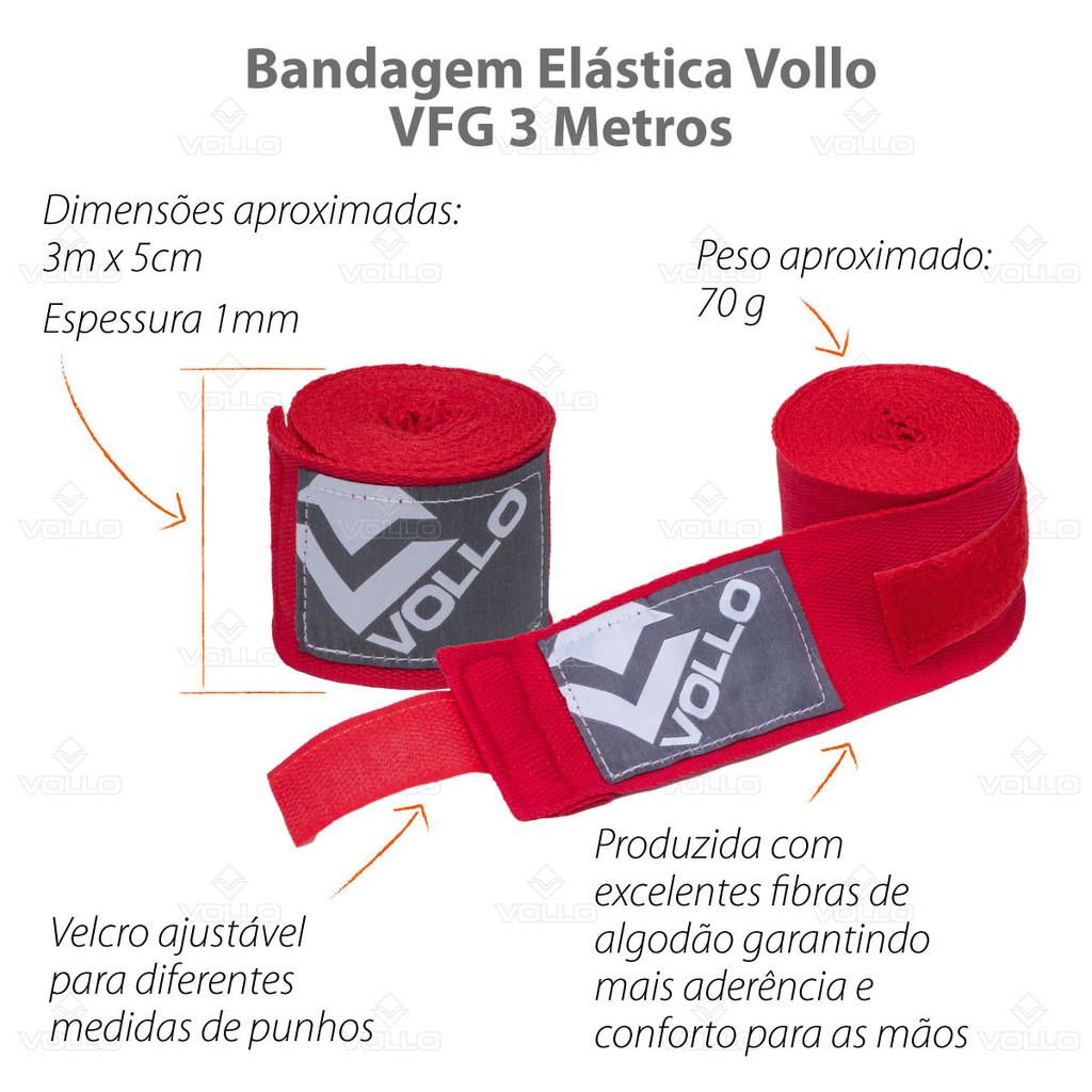 Kit Bandagem Elástica Vermelha + Protetor Bucal Boxe Vollo