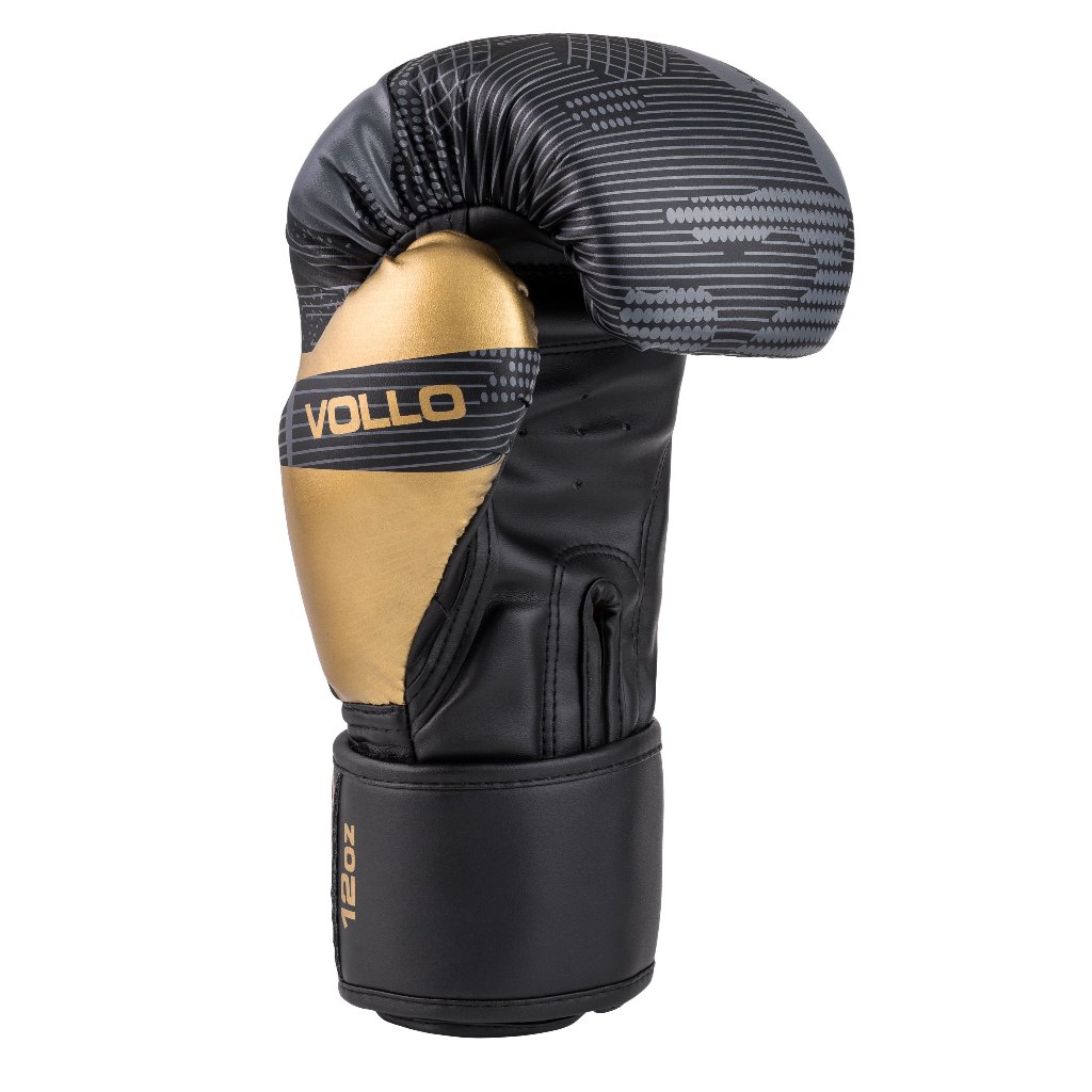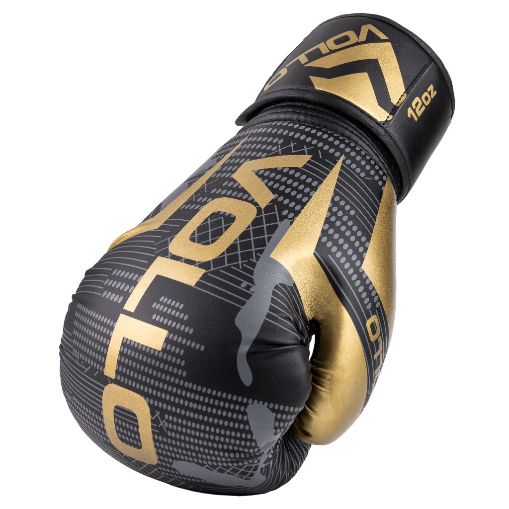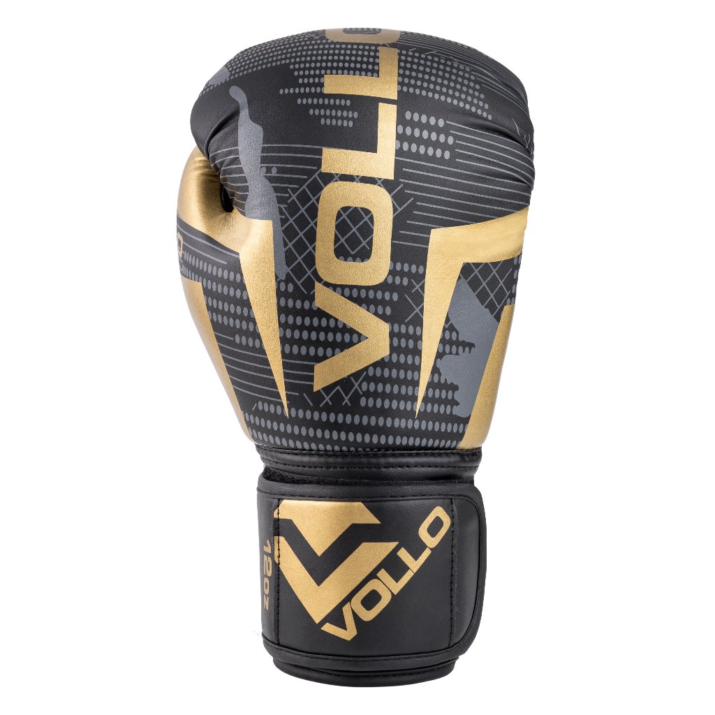 Luva de Boxe Muay Thai Kickboxing Training 12oz Preta, Cinza e Dourada Vollo