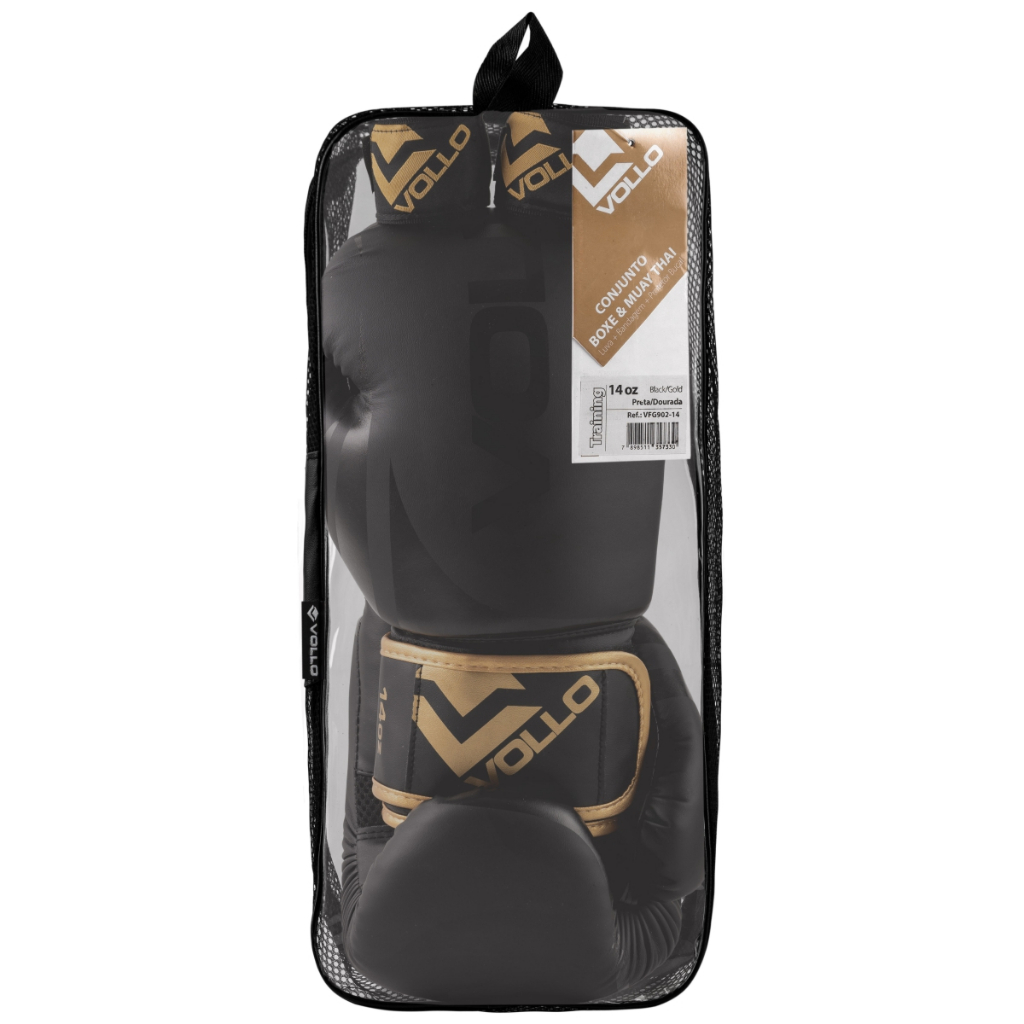 Kit de Boxe e Muay Thai Training Luva 14Oz Protetor Bucal e Bandagem 3M Vollo