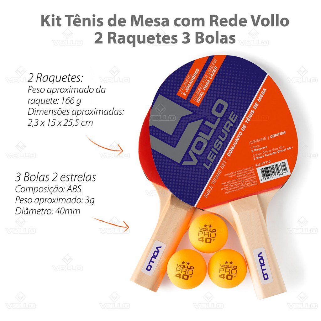 Kit Tênis de Mesa Oficial 2 Raquetes e 3 Bolas 2 Estrelas Padrão Internacional ITTF Vollo Ping Pong
