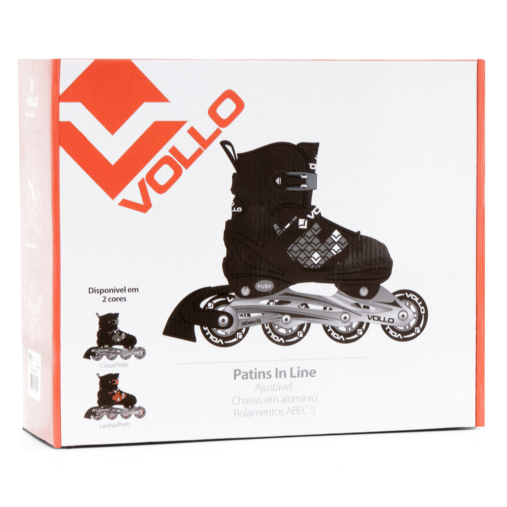 Patins In Line Ajustável 31-34 Cinza e Preto Vollo