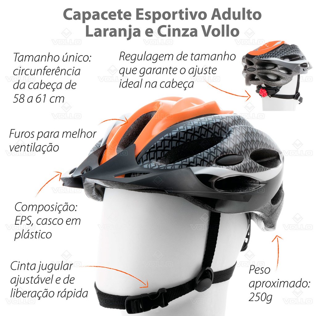 Capacete Esportivo Adulto Laranja e Cinza Vollo