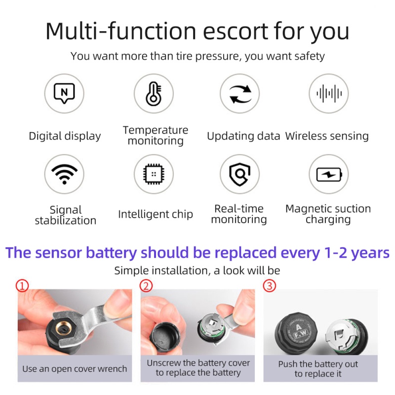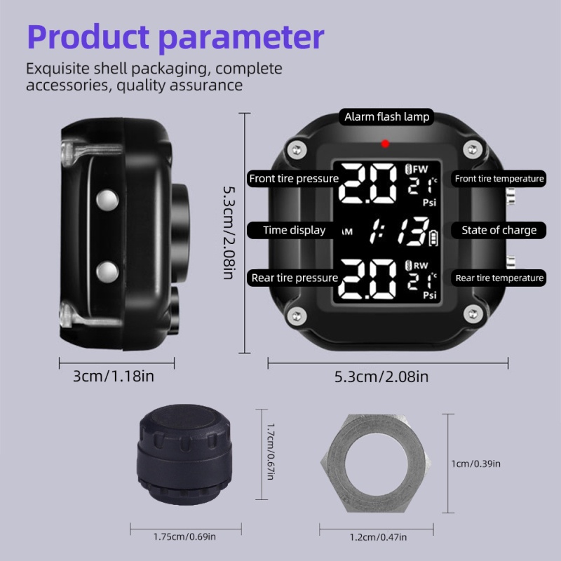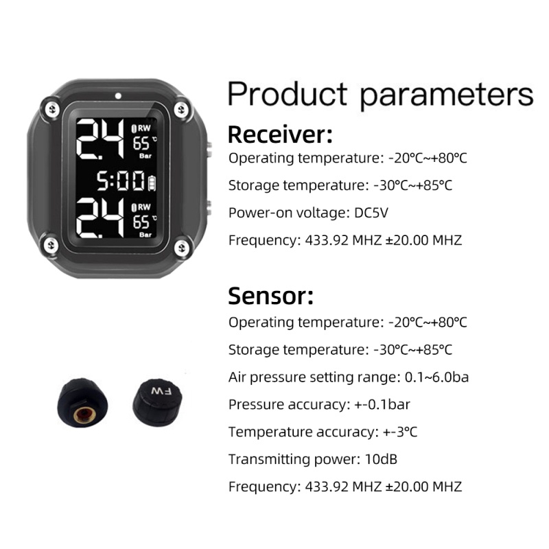 M5 Monitor De Pressão De Pneus Combinado De Motocicleta Display Digital Externo Detector Sem Fio
