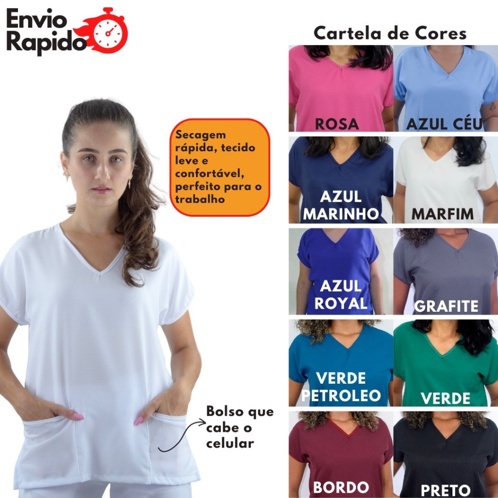 KIT Com 3 Scrubs Bata Blusa Uniforme Enfermagem Manga japonesa