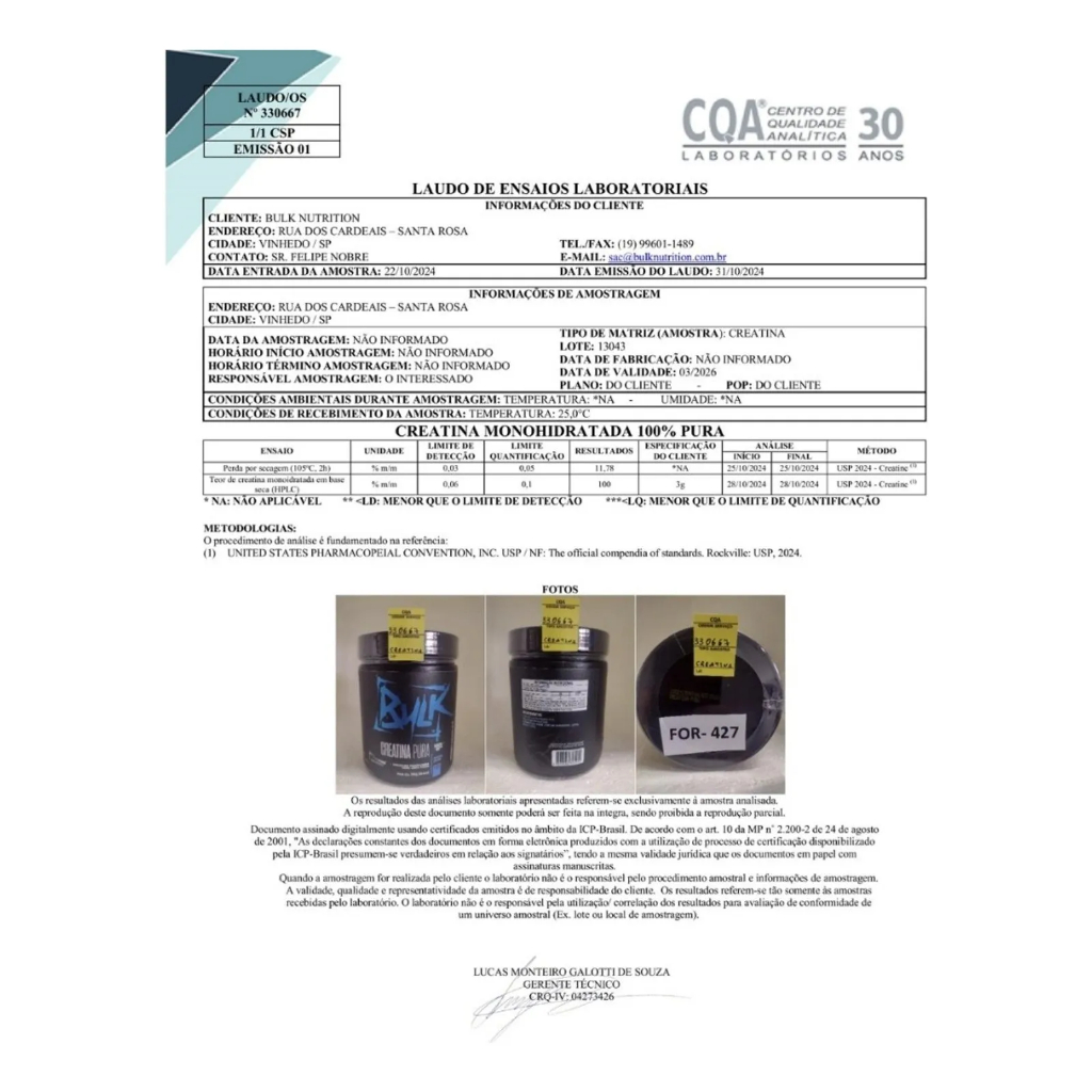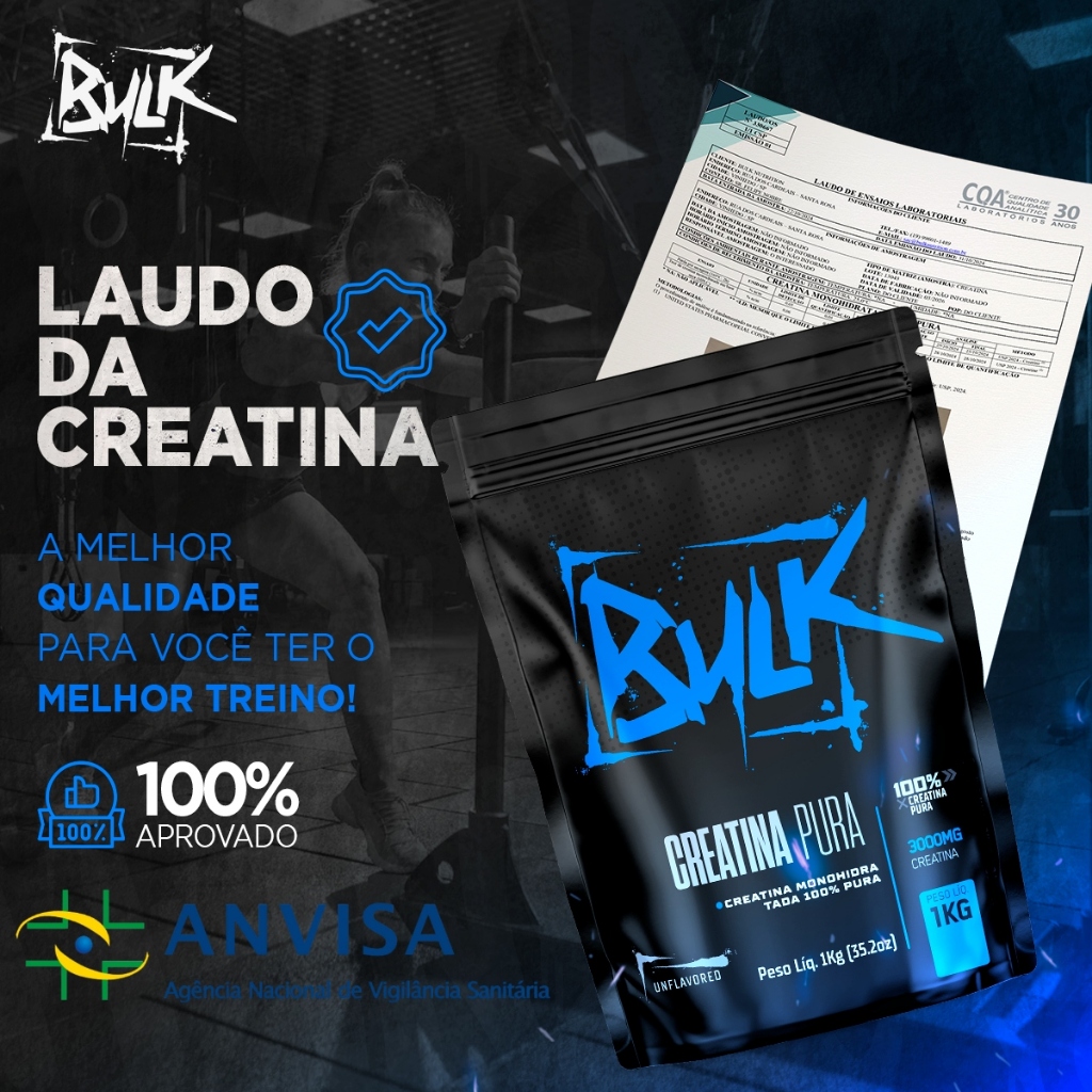 Creatina Monohidratada 100% Pura Laudo Aprovado - Bulk Nutrition