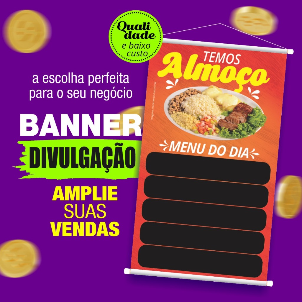 BANNER TEMOS ALMOÇO MENU DO DIA 5 LINHAS 40X60CM