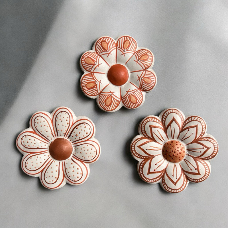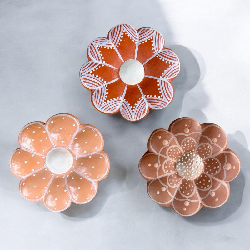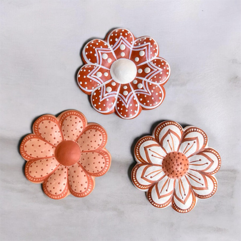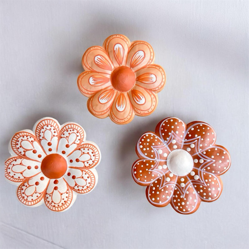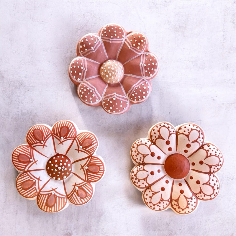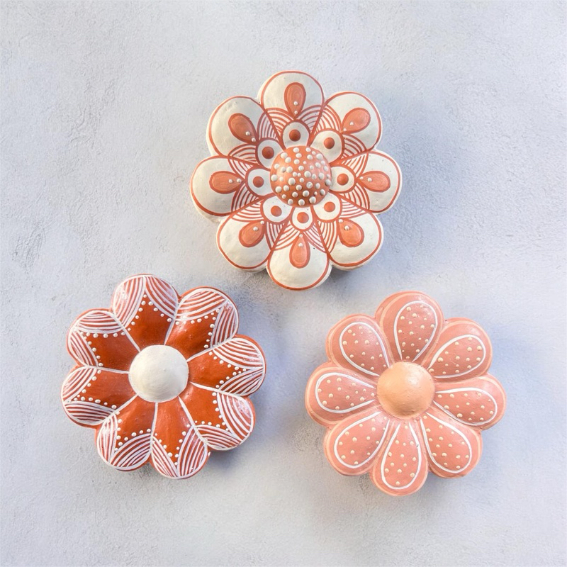 3 Flores de Barro Artesanais Pequenas | 9 cm | Vale do Jequitinhonha
