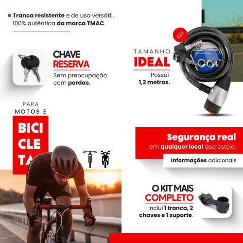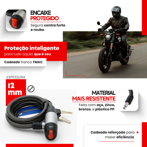 Trava Cadeado Cabo Aço Carro Moto Estepe Bike Bicicleta 12mm Tmac