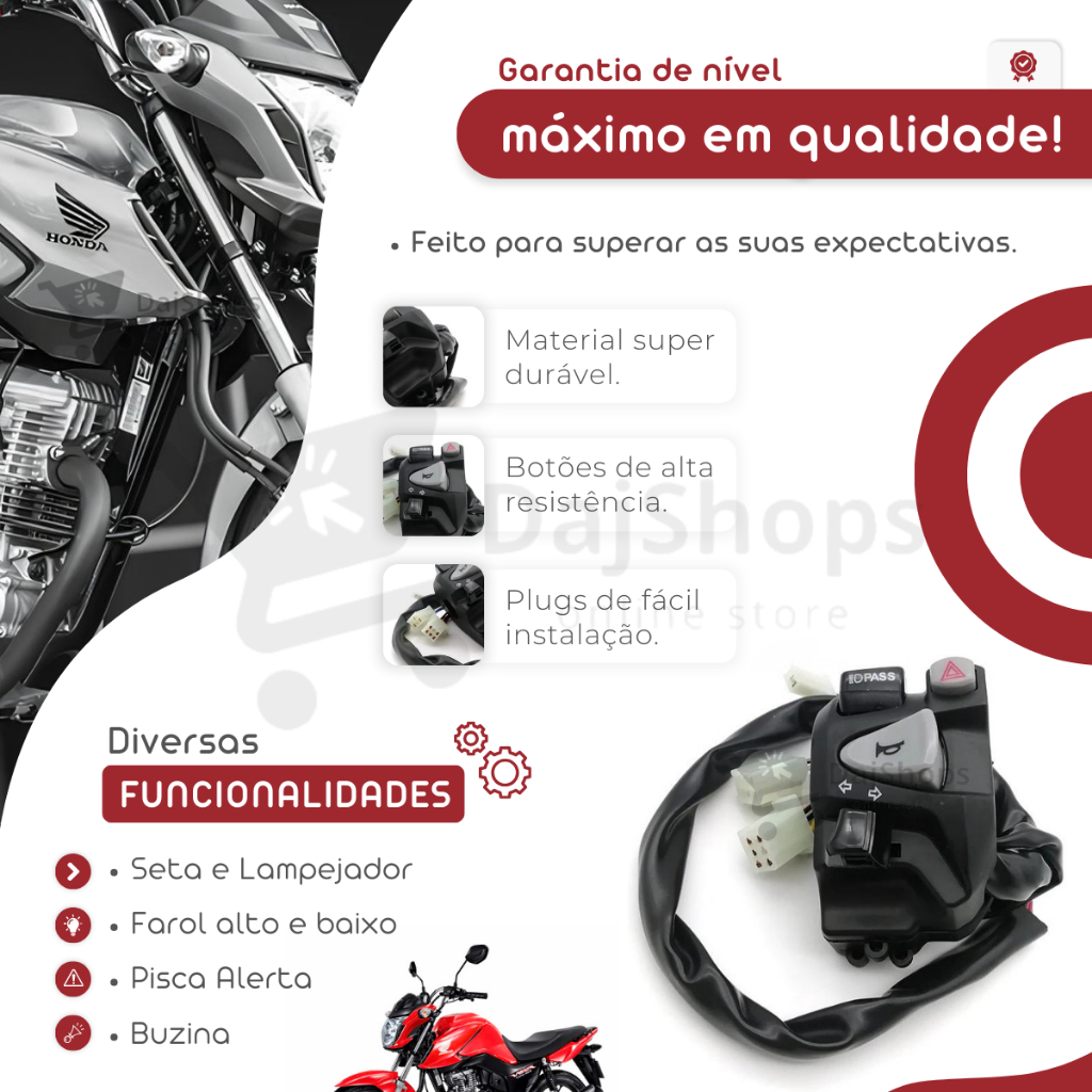 Punho Chave Luz Fan 150 Titan 150 2004 2013 Fan 125 2009 2013 Pisca Alerta Lampejo Cb 650 Nc 750