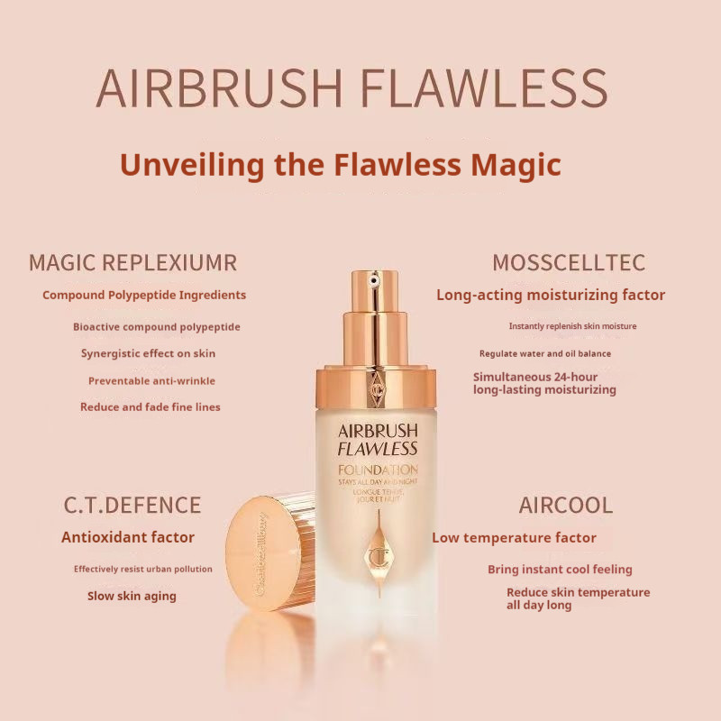 Charlotte Tilbury/CT Liquid Foundation Natural De Longa Duração Base Líquida Impecável Hidratante Fosco Maquiagem Facial