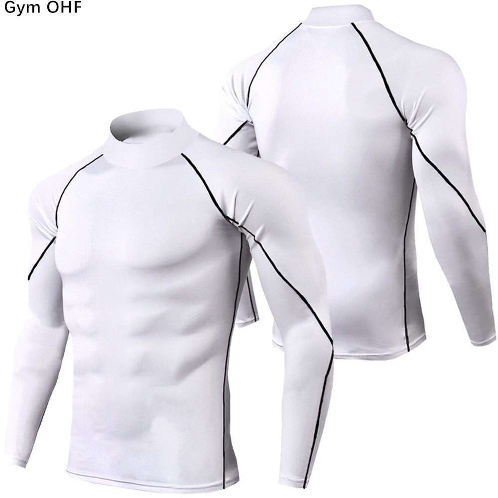 Outono Gola Alta Camisa De Secagem Rápida Masculina Casual Malha Camiseta Fino Ajuste Respirável Fitness Topo