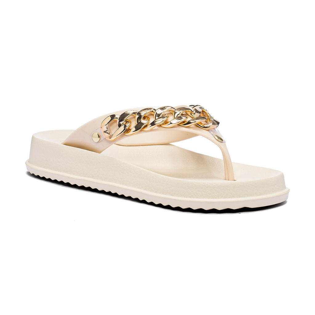 Chinelo Feminino Nuvem com Corrente Dourada Blogueira Verão Sandália Rasteira Papete Confortável