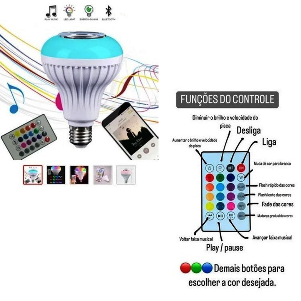 Lampada Musical Caixa Som Bluetooth Led Rgb Com Controle