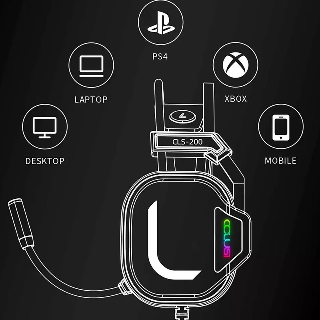Fone de Ouvido Over-ear Gamer Colusi GLS-200 RGB Preto