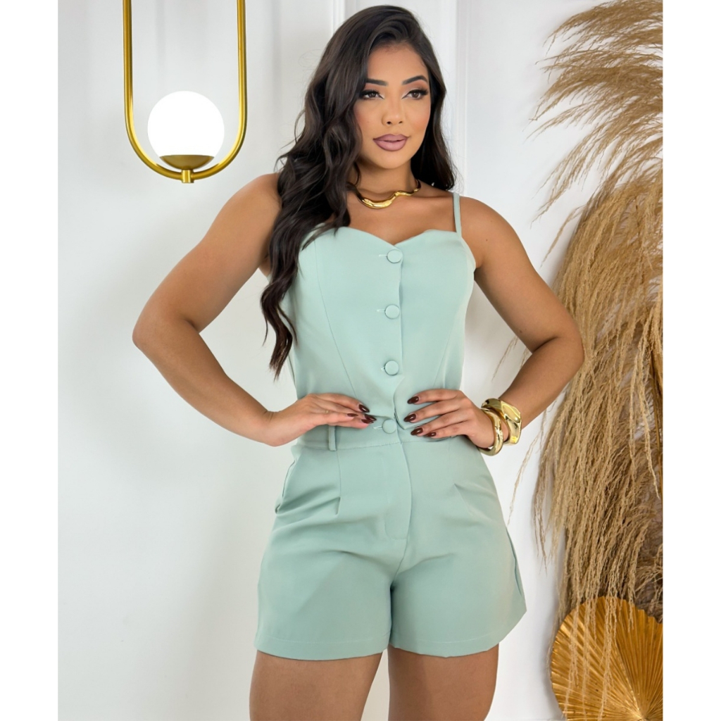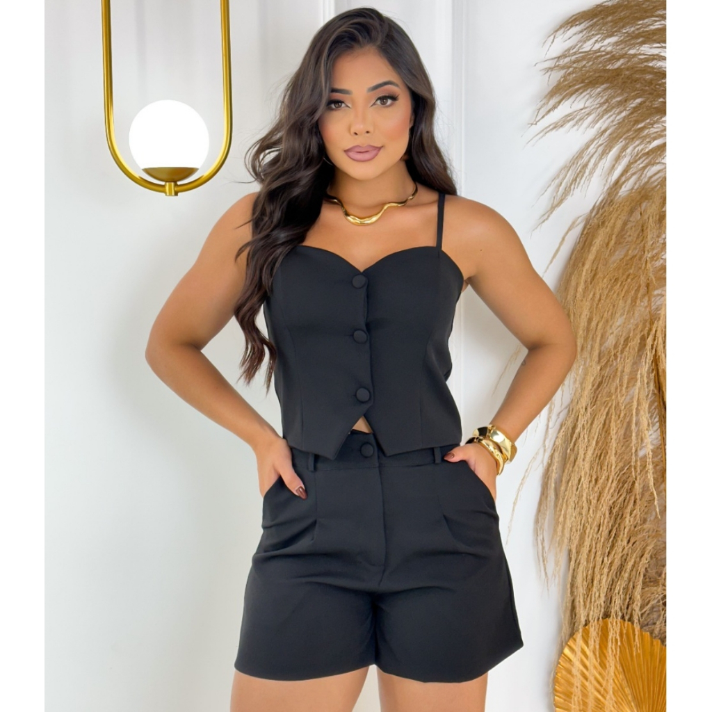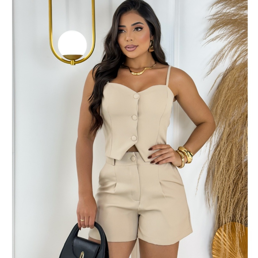 Conjunto Feminino Alfaiataria Algodão Casual Blusa e Short Cintura Alta Confortável Premium