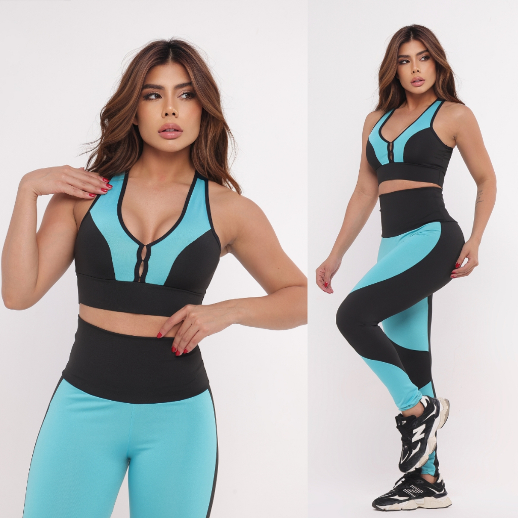 Conjunto Fitness Feminino Top + Calça Legging Cós Alto Suplex Academia Confortável e Elegante