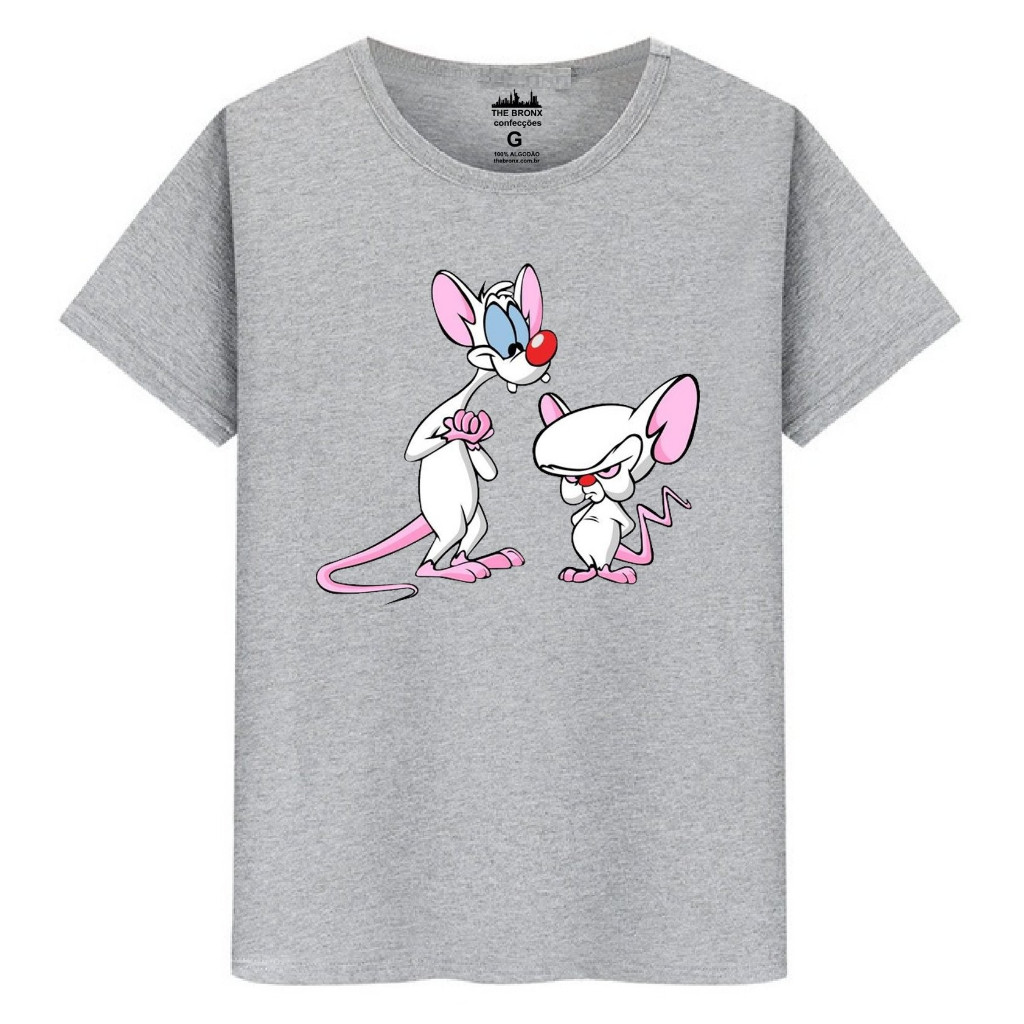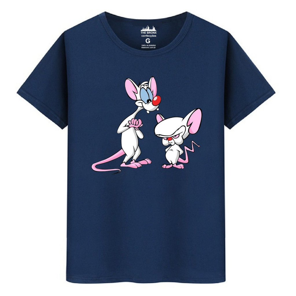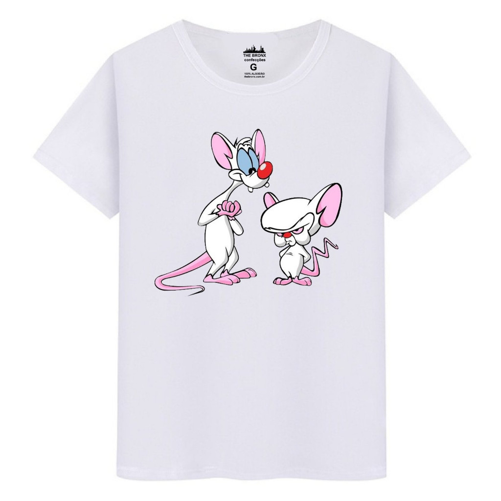 Camiseta Masculina Algodão Premium Pink Cérebro Ratos Dominar Mundo