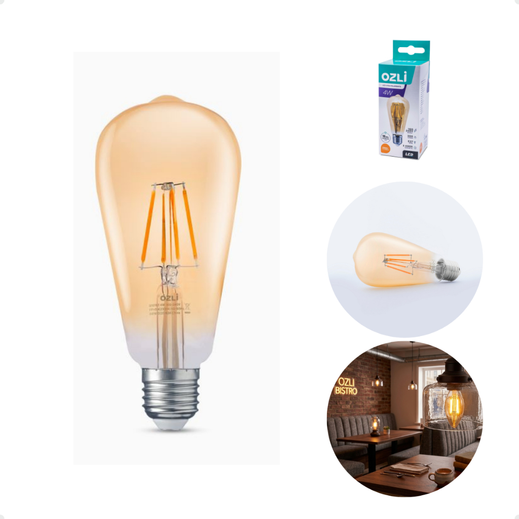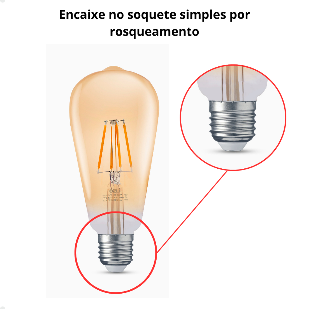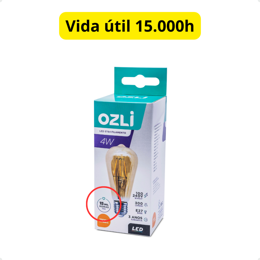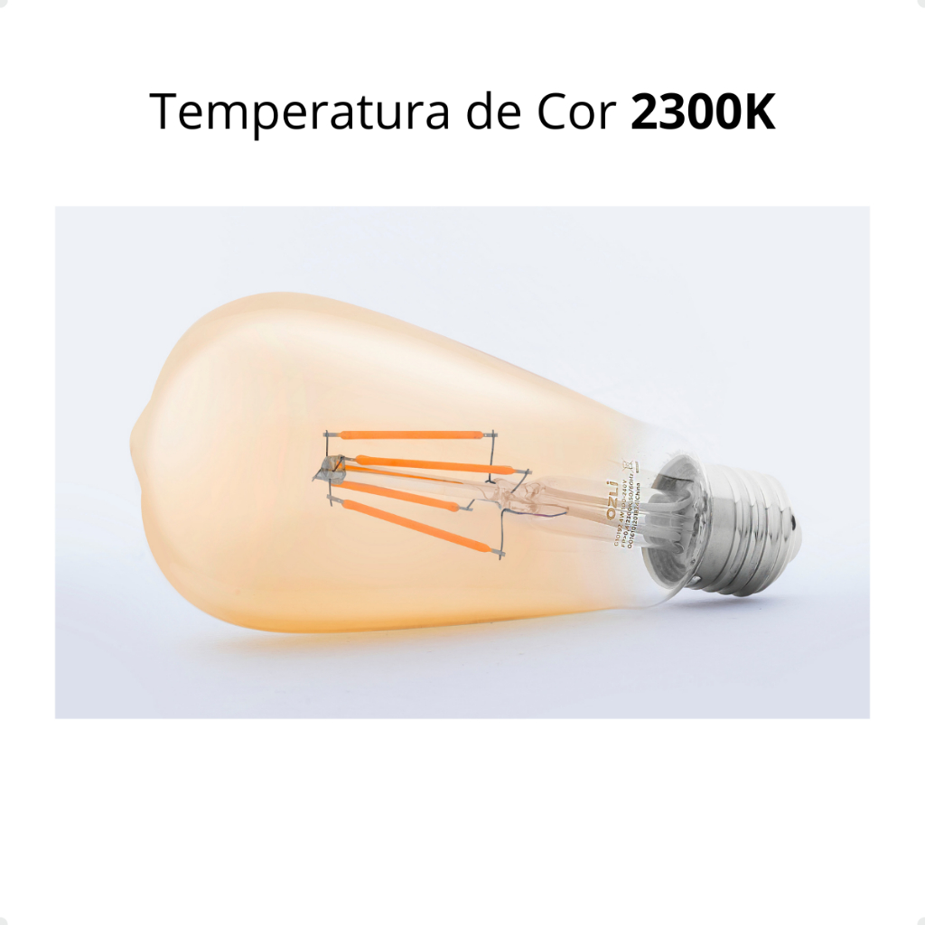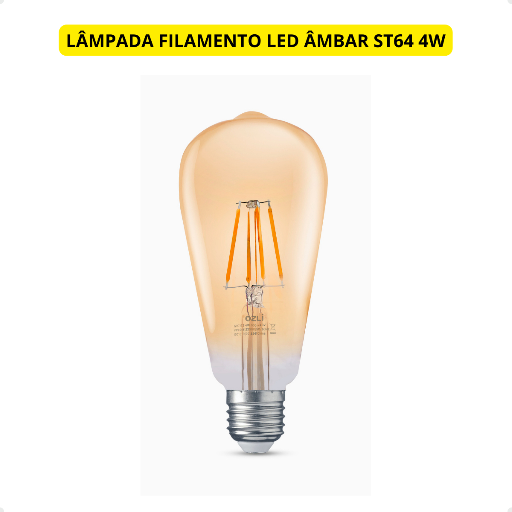 kit 3 lâmpadas led retrô filamento st64 4w luz âmbar 2300k e27 bivolt