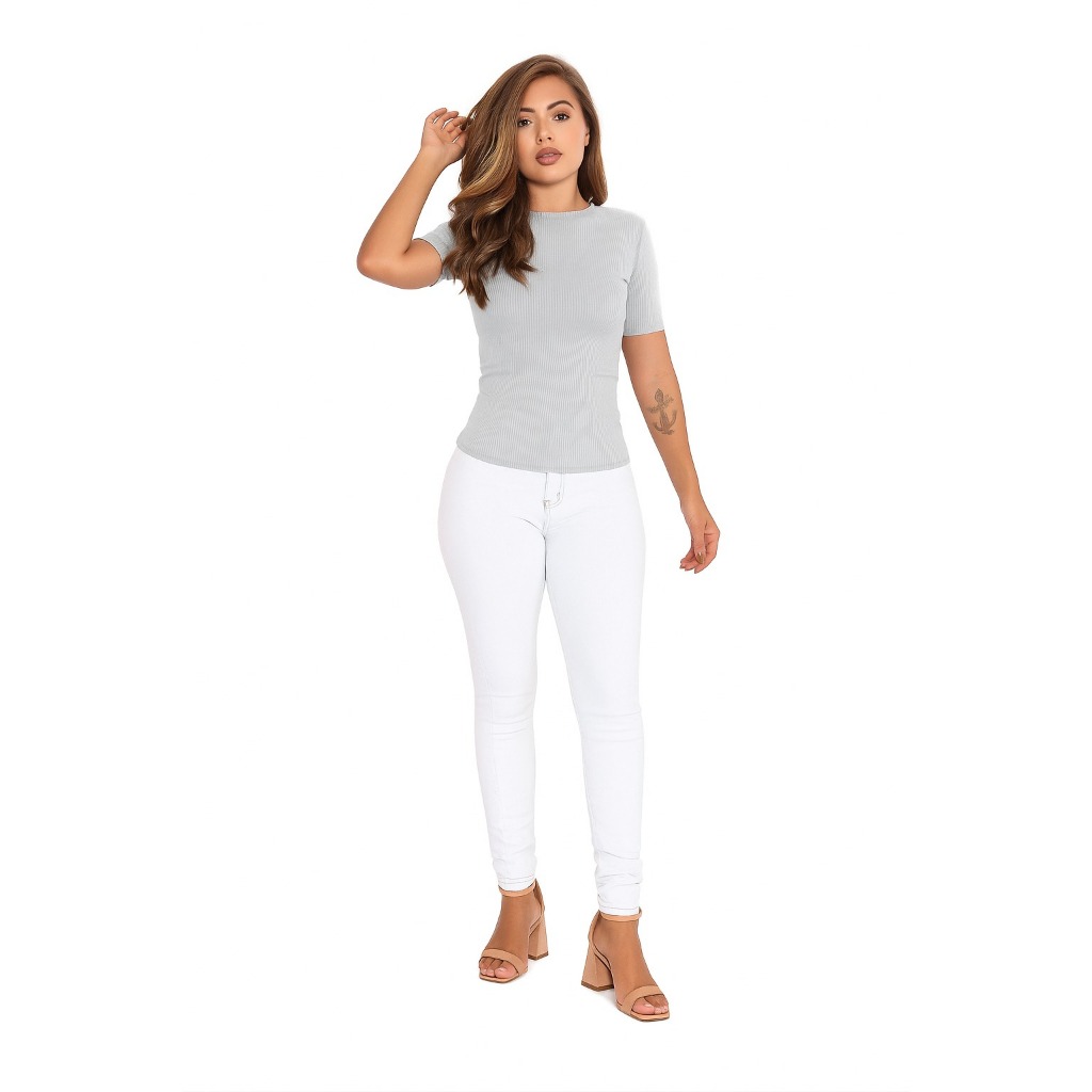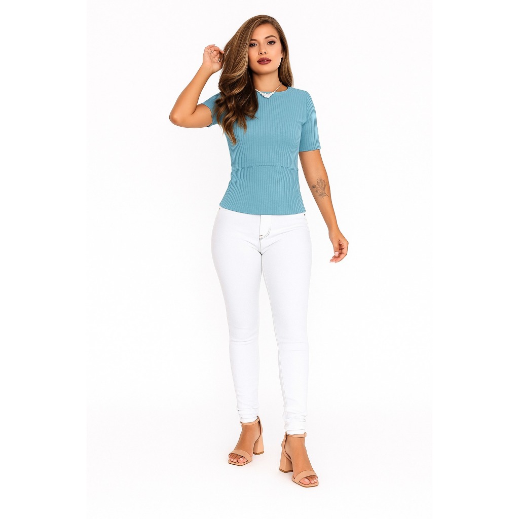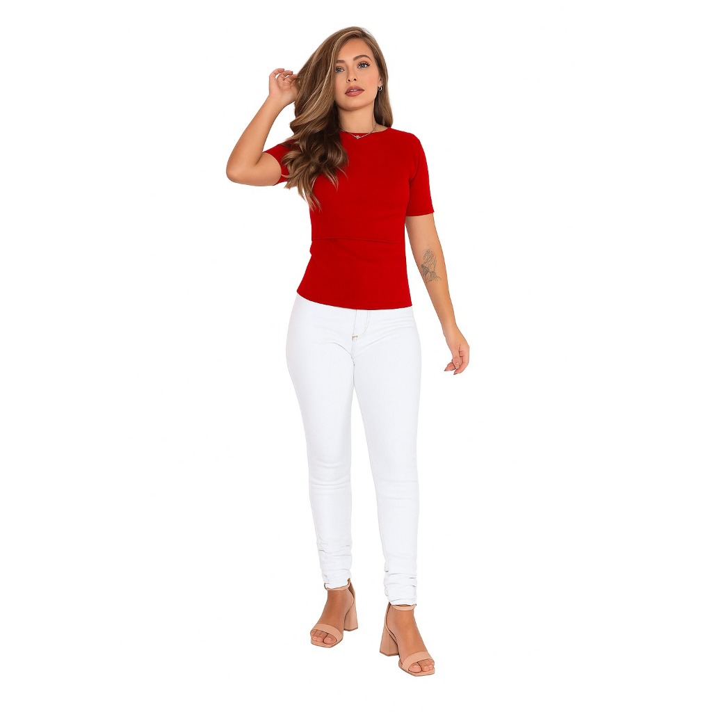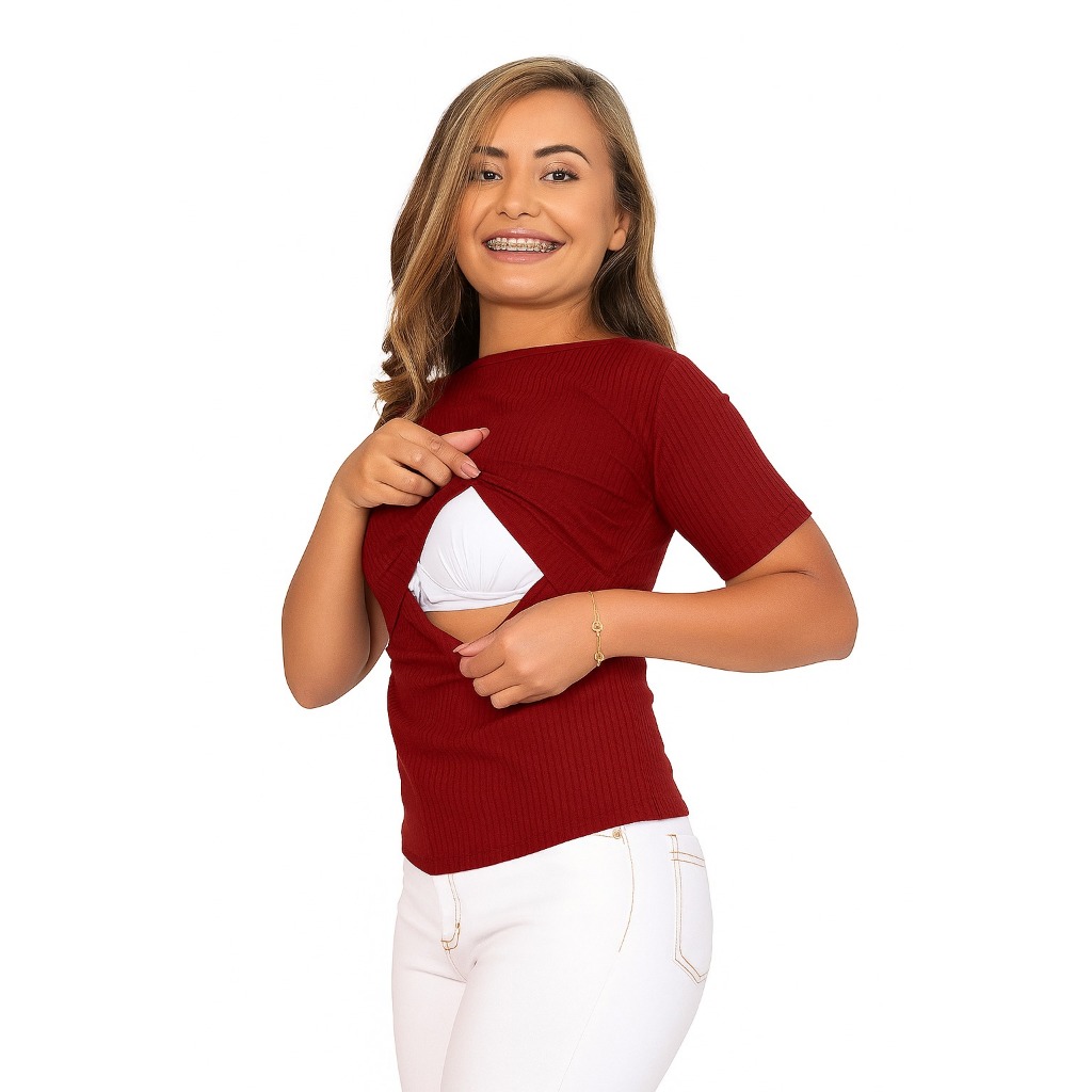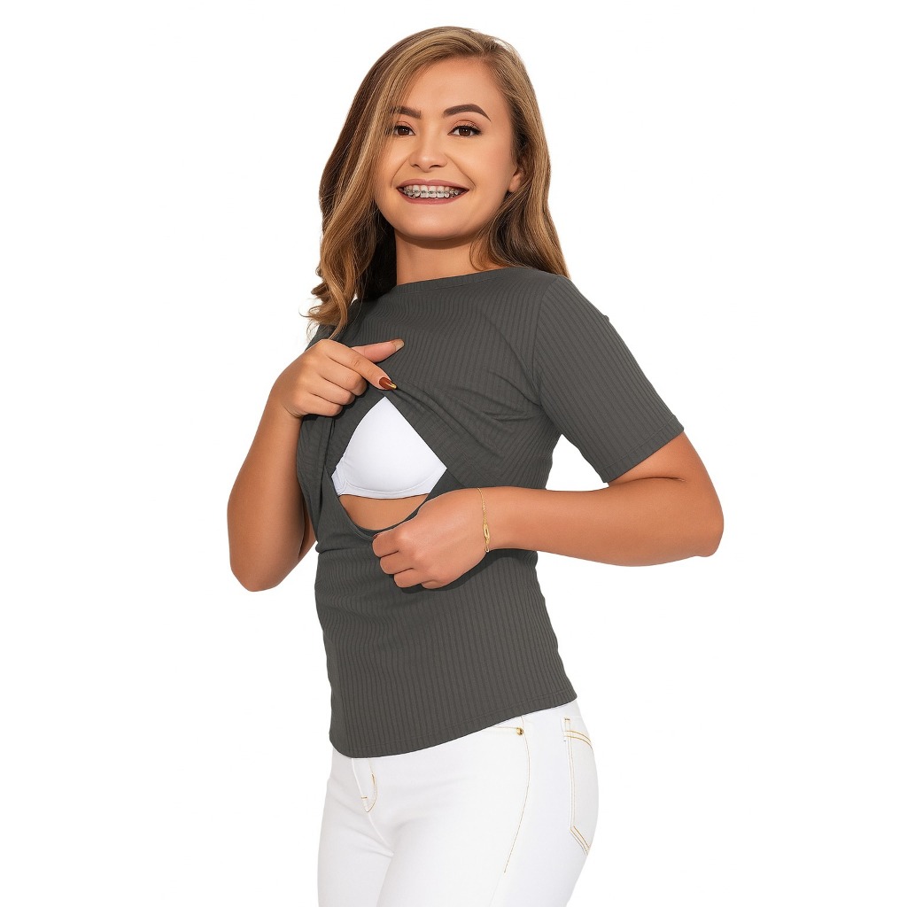 Blusa Amamentação Manga Curta Gola Alta Canelado Gestante Confortável