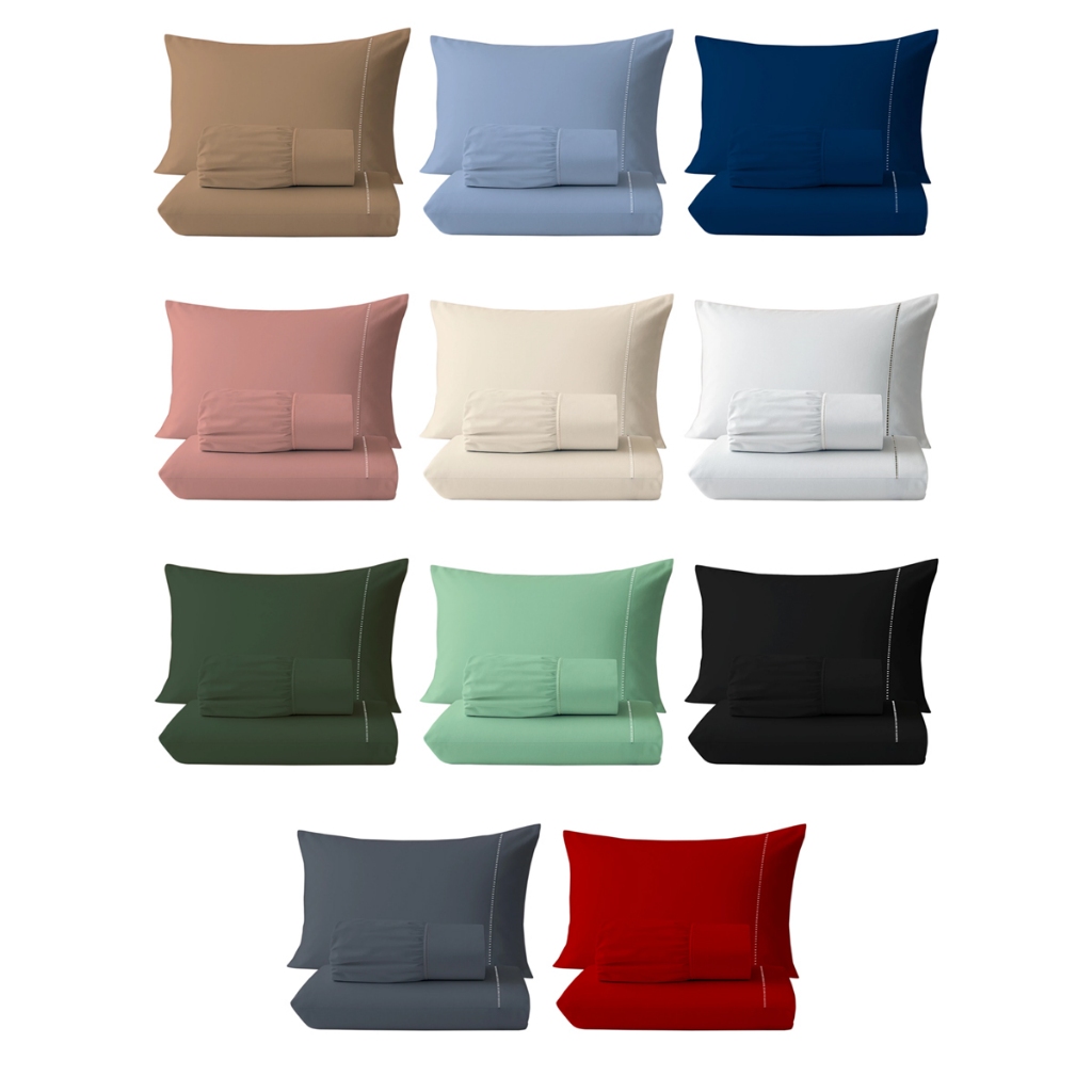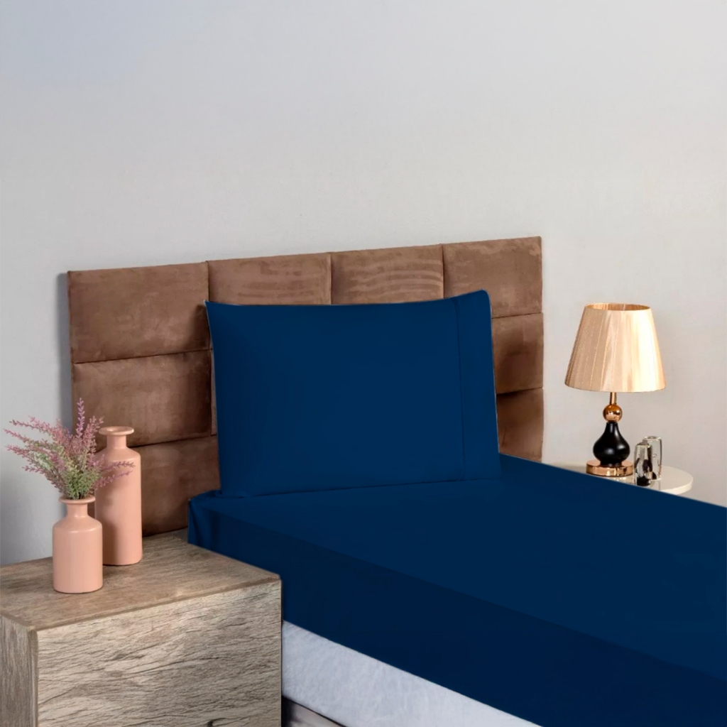 Jogo de Lençol 3 Peças 400 Fios Ponto Palito Cama Solteiro Casal Queen King Micropercal Várias Cores