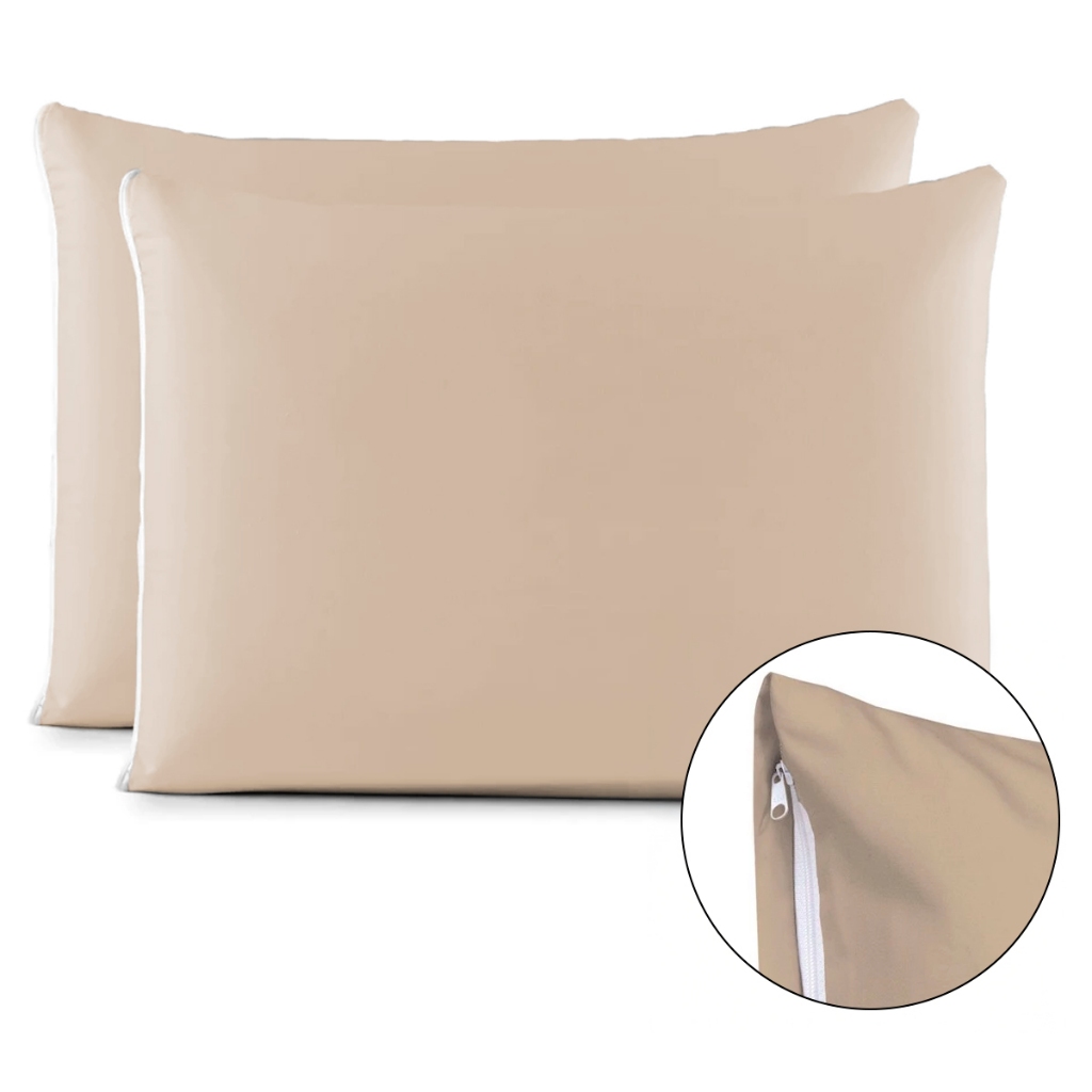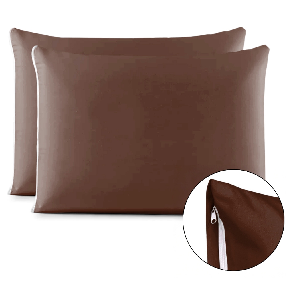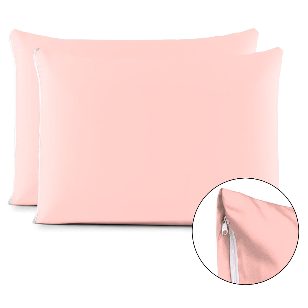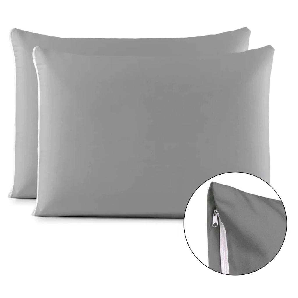 Kit Par de Fronhas Algodão Com Zíper Lisa 70x50cm Macia 180 Fios de Alta Qualidade