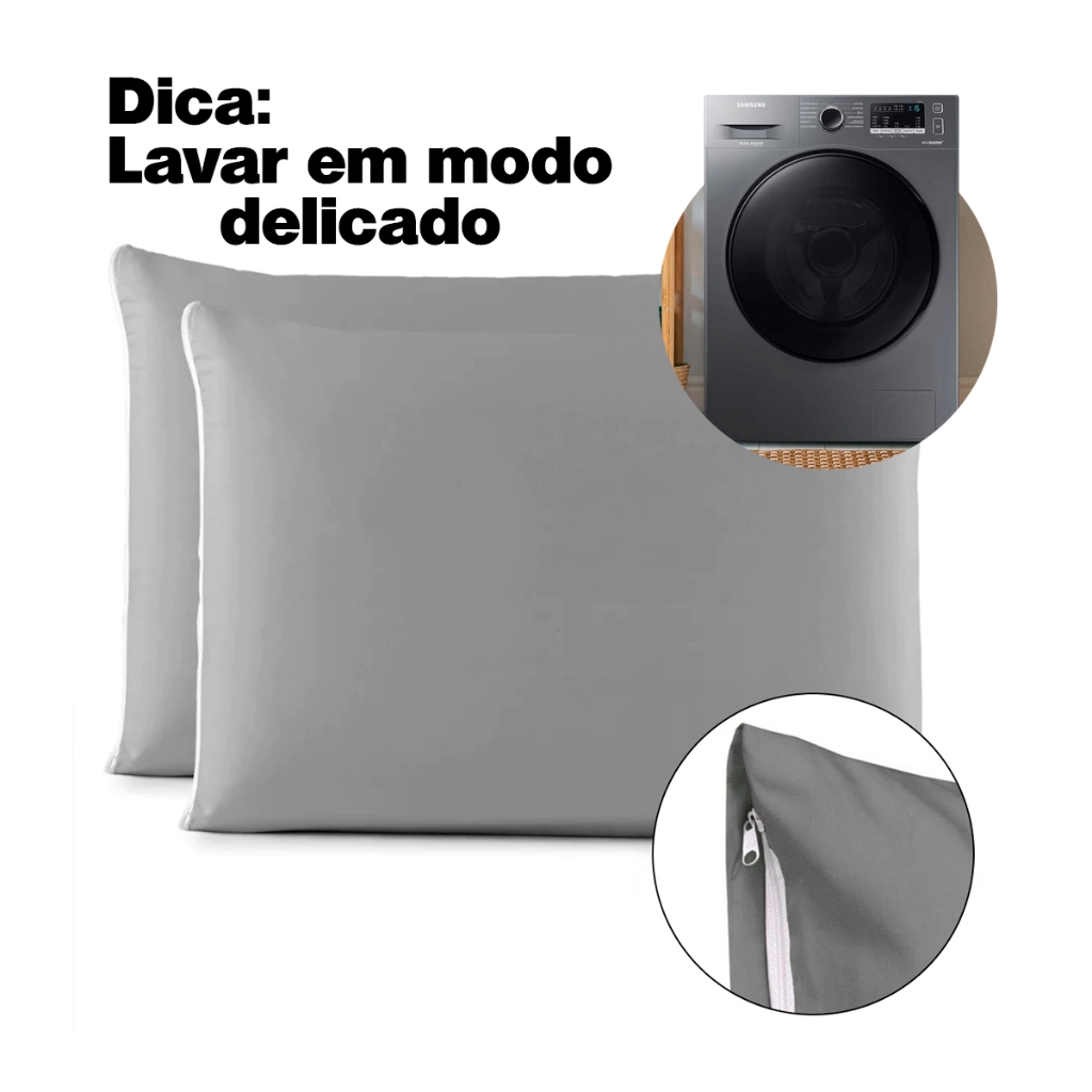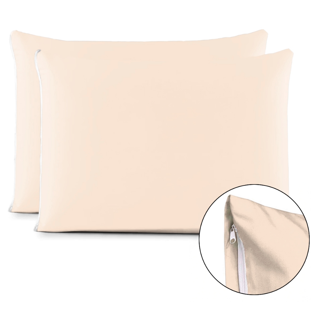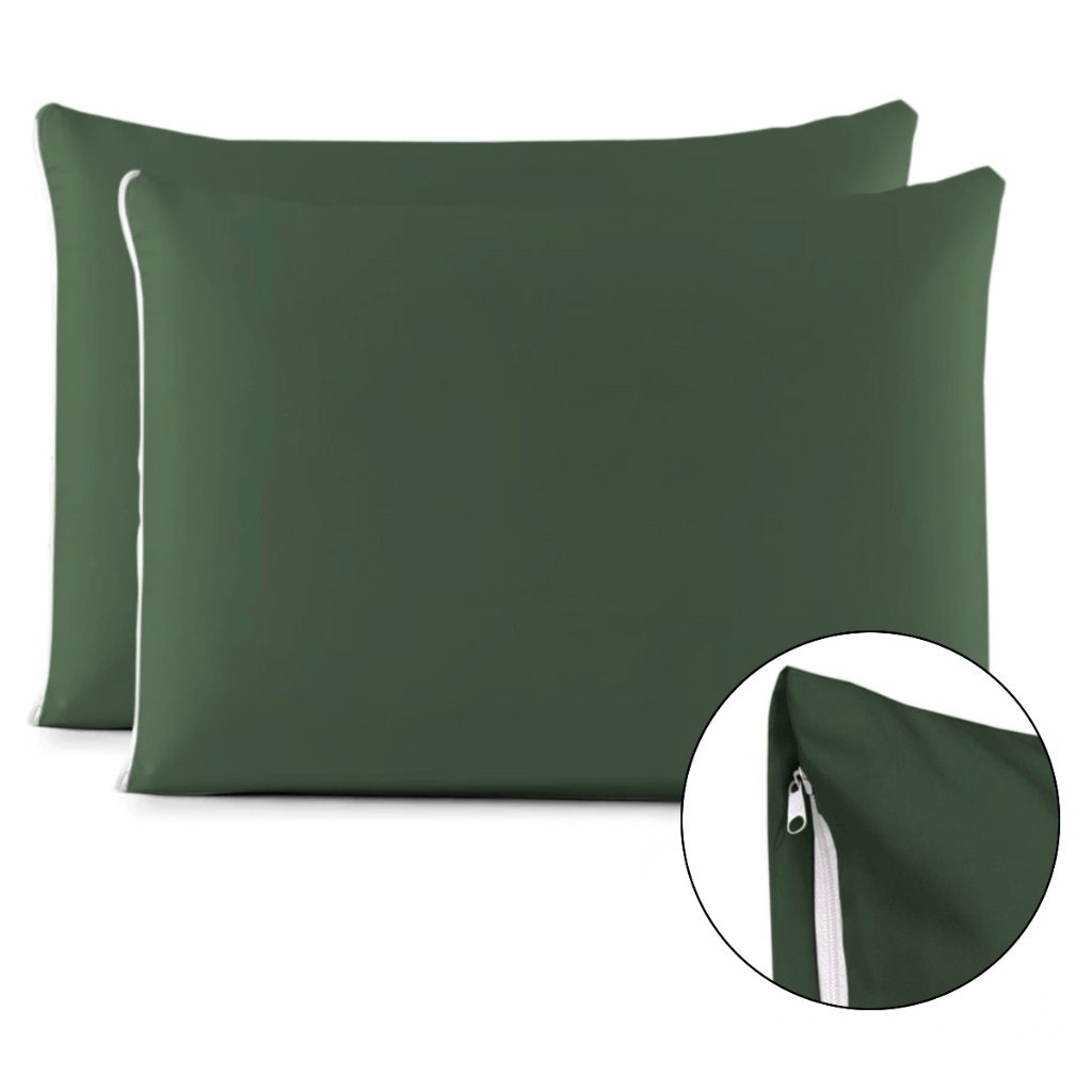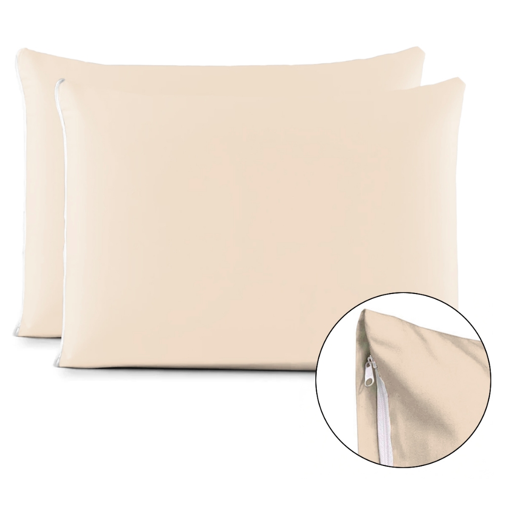 Kit Par de Fronhas Algodão Com Zíper Lisa 70x50cm Macia 180 Fios de Alta Qualidade