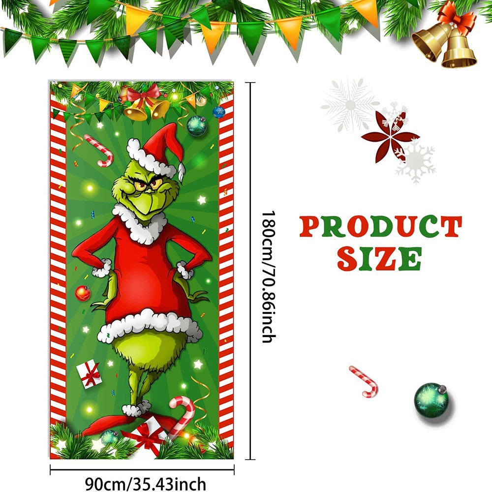 Feliz Natal Grinch Decorações Da Tampa Porta De Banner Green Backdrop