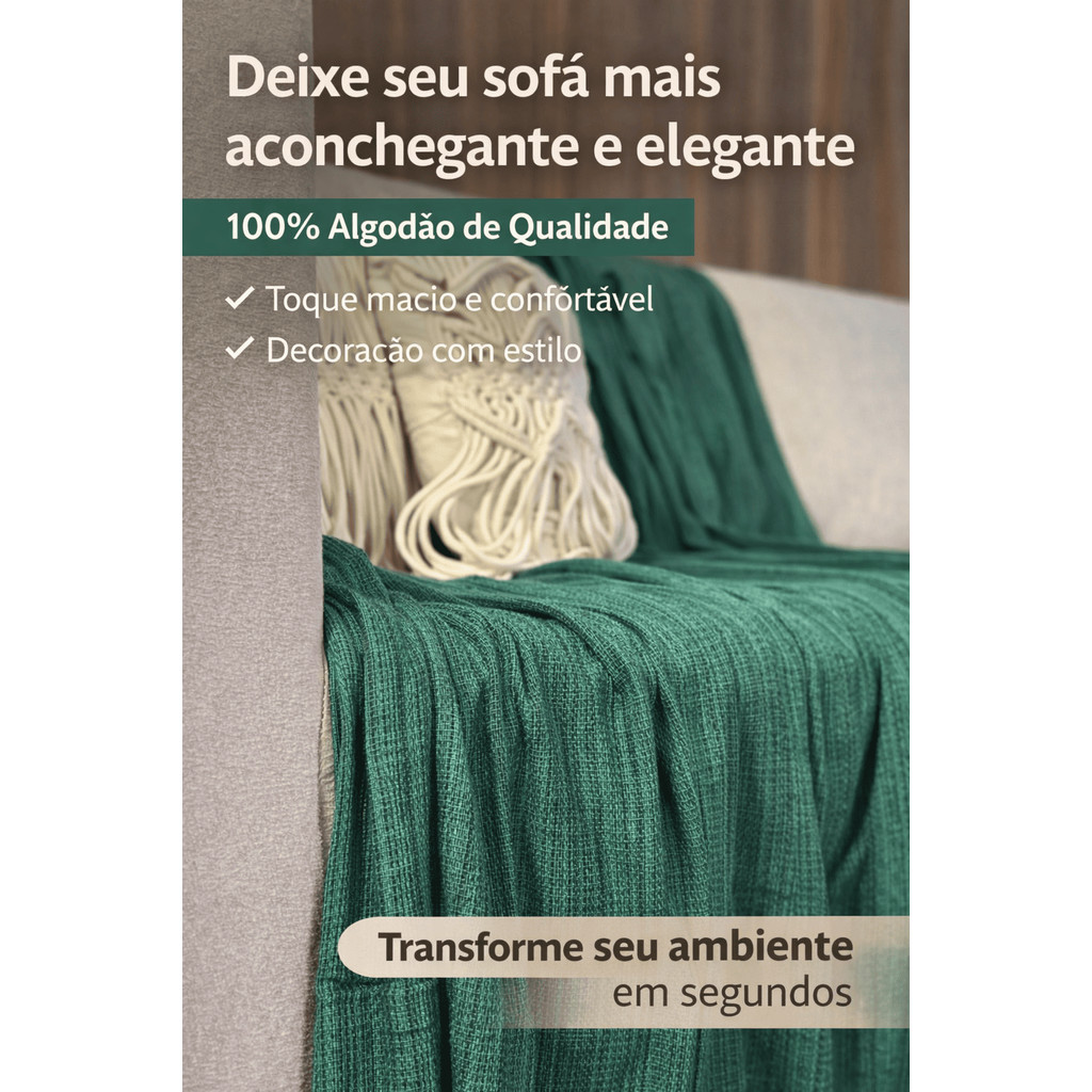 Manta para Sofá 100% Algodão 2,00x1,20 Capa Protetora Luxo Grande Decorativa Aconchegante