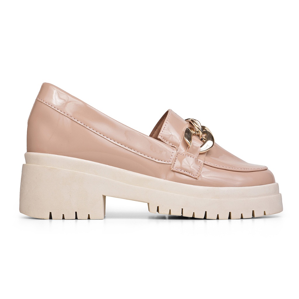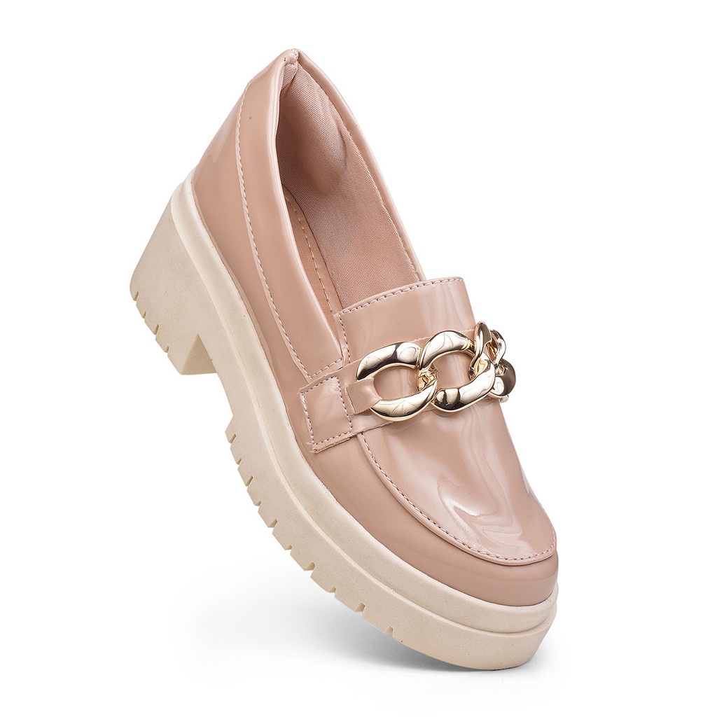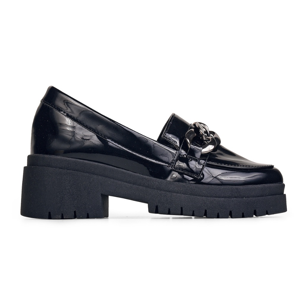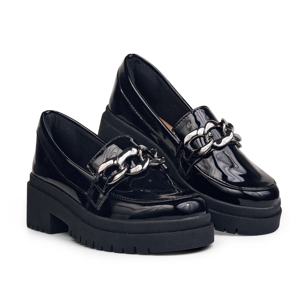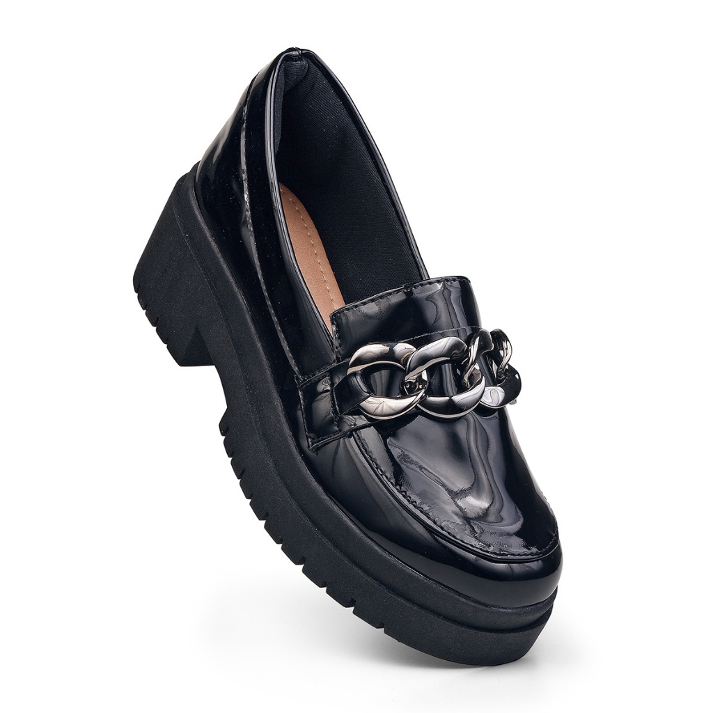 Mocassim feminino Tratorado Oxford sapato corrente preto verniz confortavel