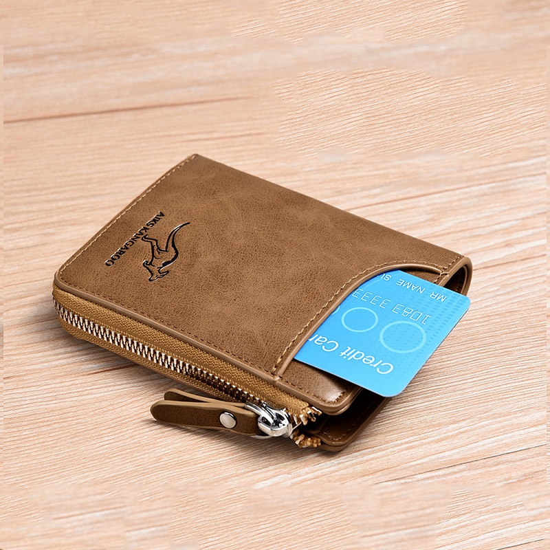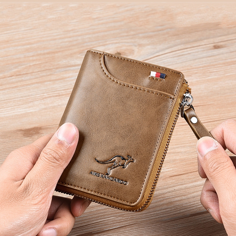 Porta-Cartões De Crédito Carteira Masculina Kangaroo Com Zíper Saco De Dinheiro RFID