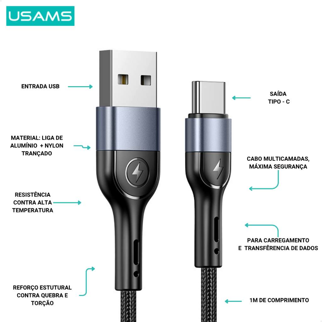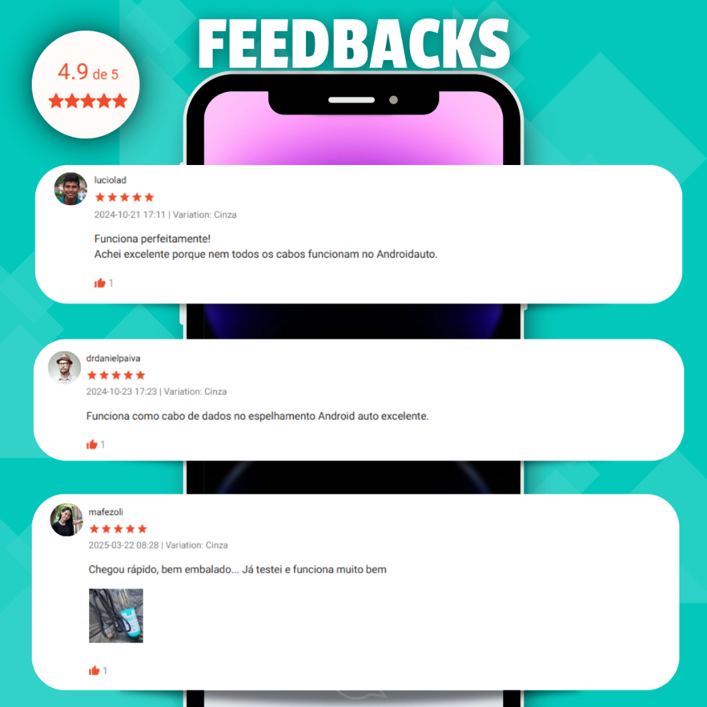 Cabo Multimídia USB Tipo-C – Android Auto e Apple CarPlay, Dados e Energia p/ iPhone Samsung