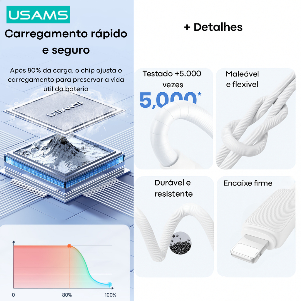 Cabo iPhone Apple CarPlay 1M – USB Lightning P/ Multimídia, Carregamento e Dados USAMS