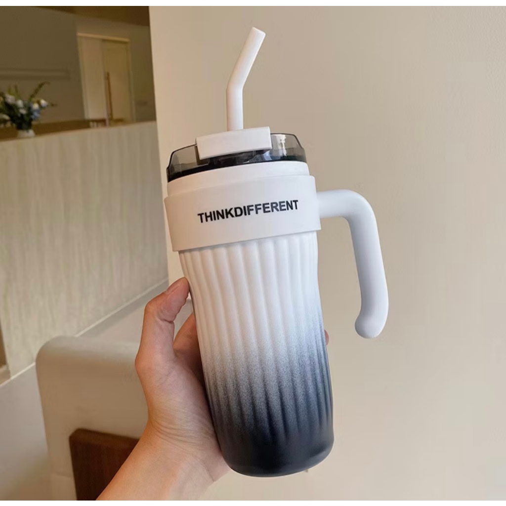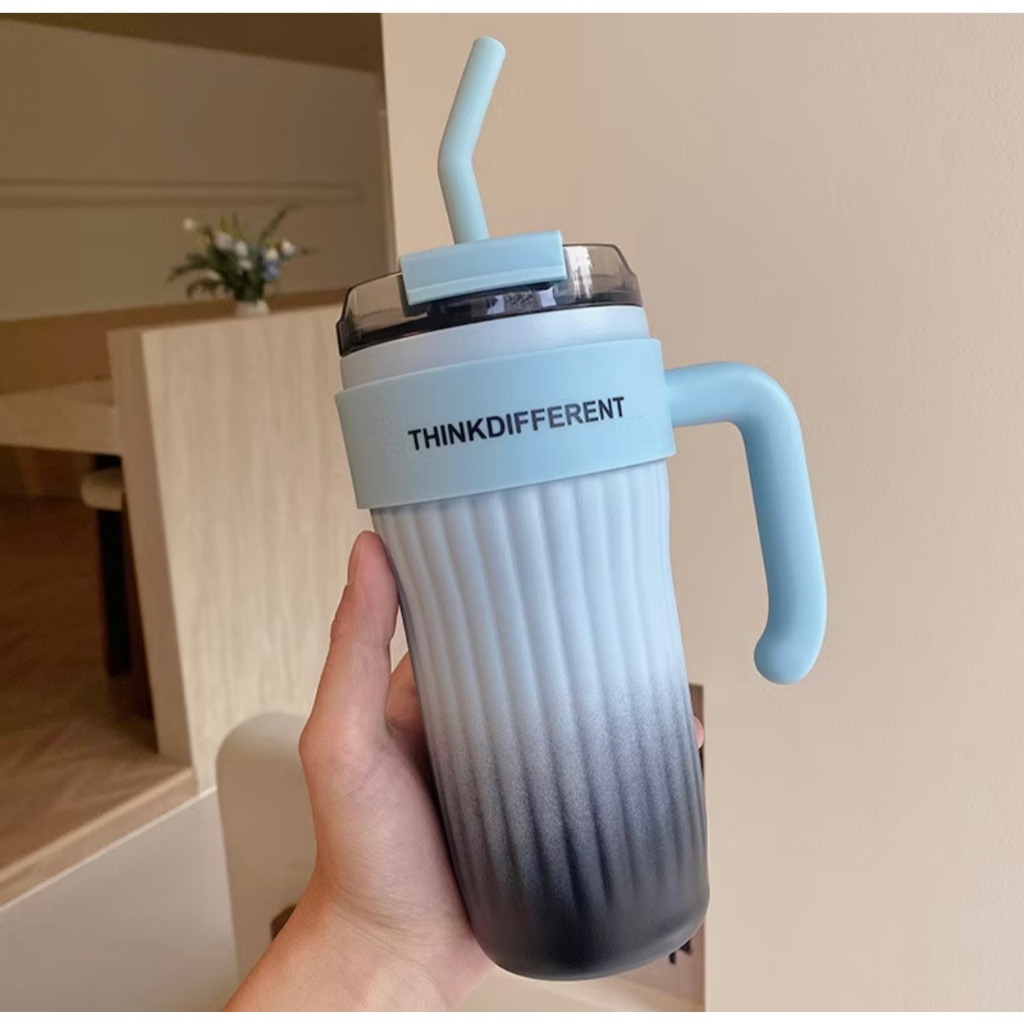 Copo Térmico Caneca 800ml Aço Inox Canudo Inox Tampa e Alça WL-8144