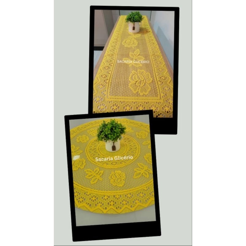 Kit AMARELO 1 Caminho De Renda + 1Toalha De Chá Redonda