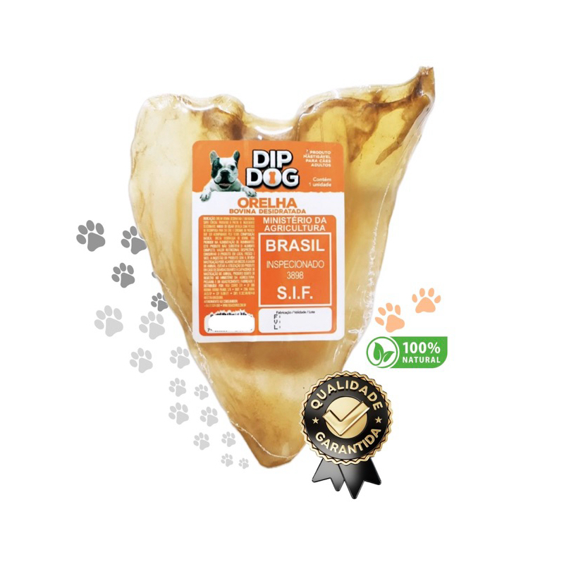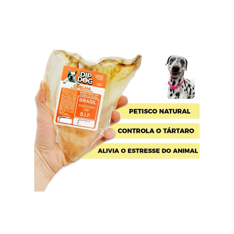 Orelha Bovina Desidratada Pet Mordedor Petisco Natural