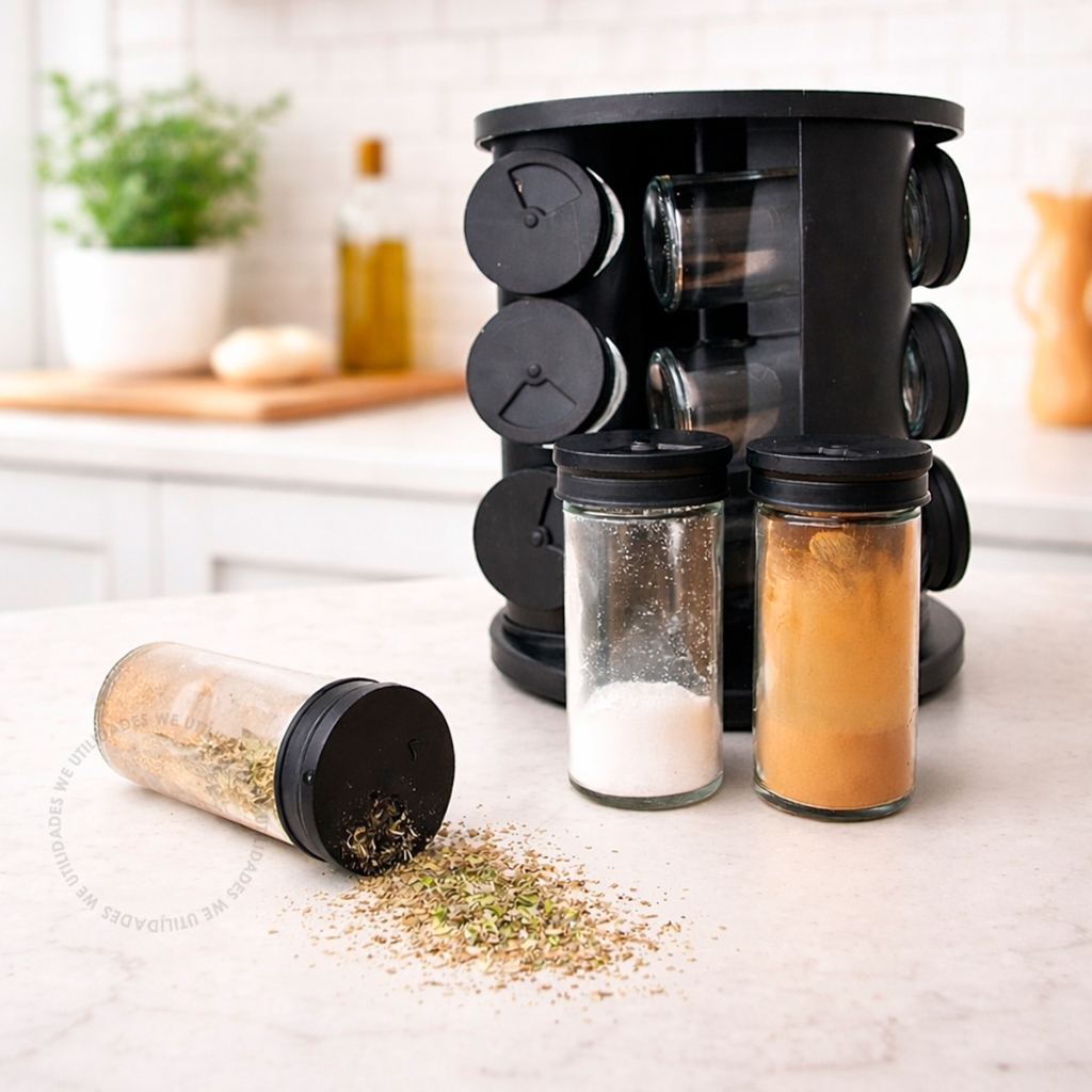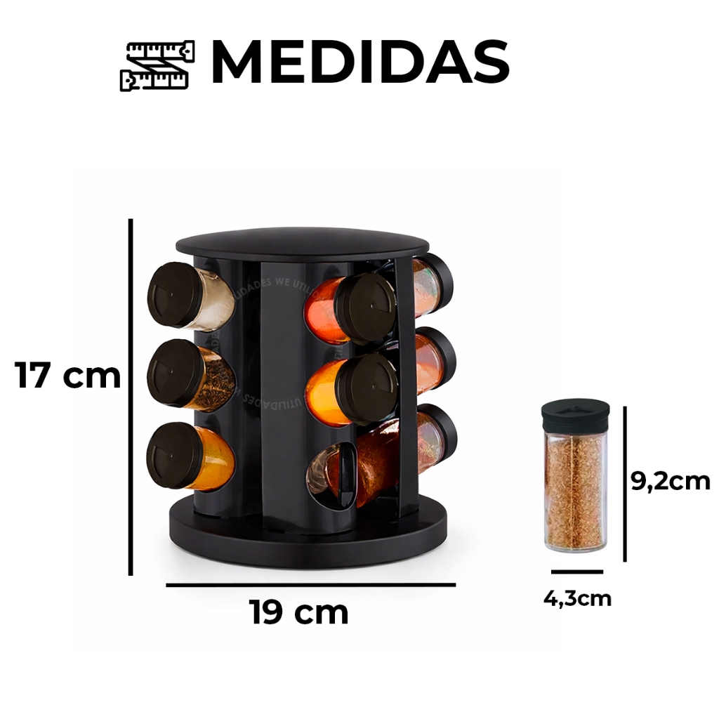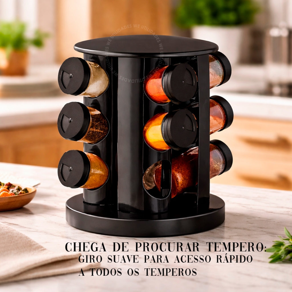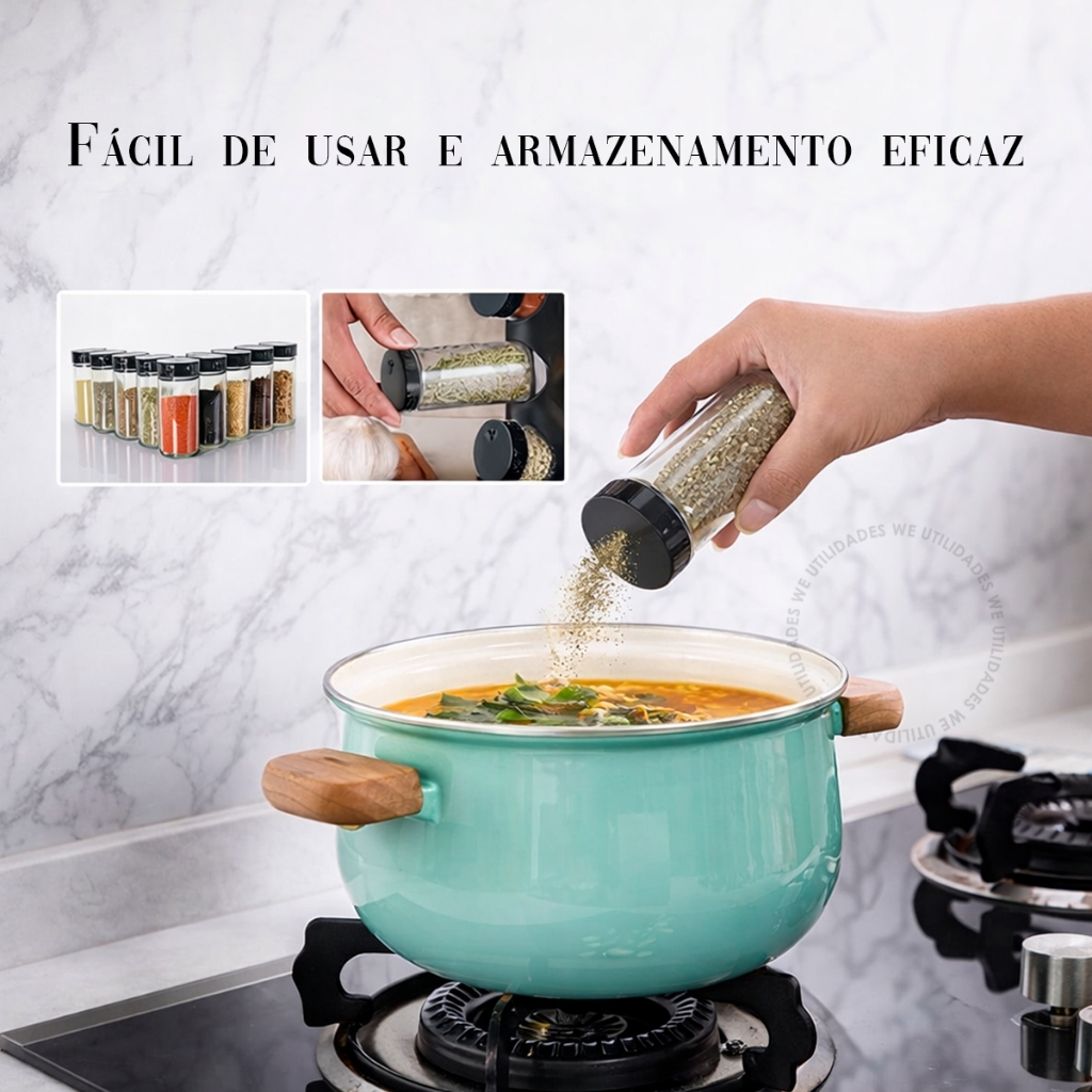 Porta Temperos Condimentos Giratório 9 Potes Organizador Potes Vidro Tampa Profissional