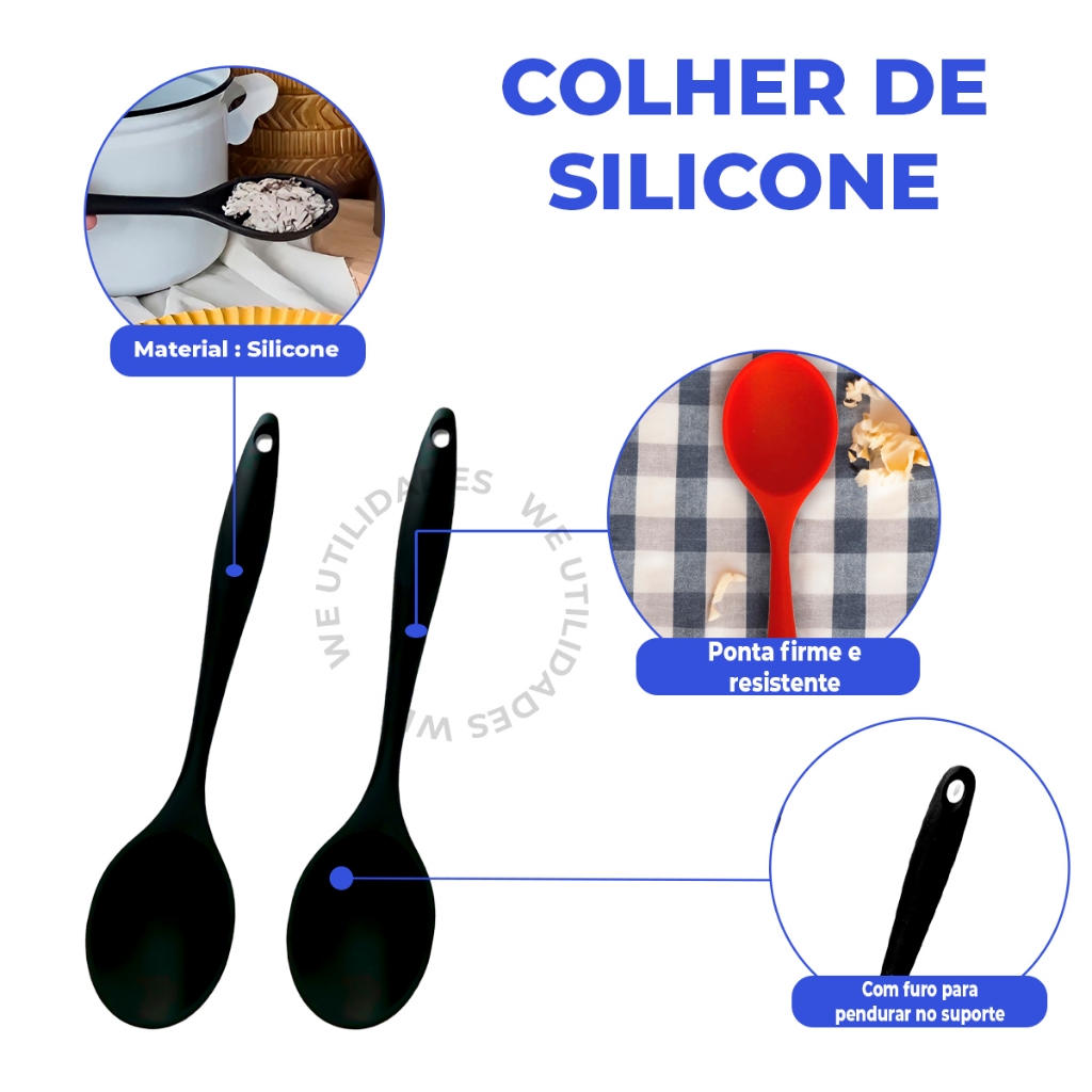 Kit Colher Redonda de Silicone 27cm Grande 2 Peças Preto