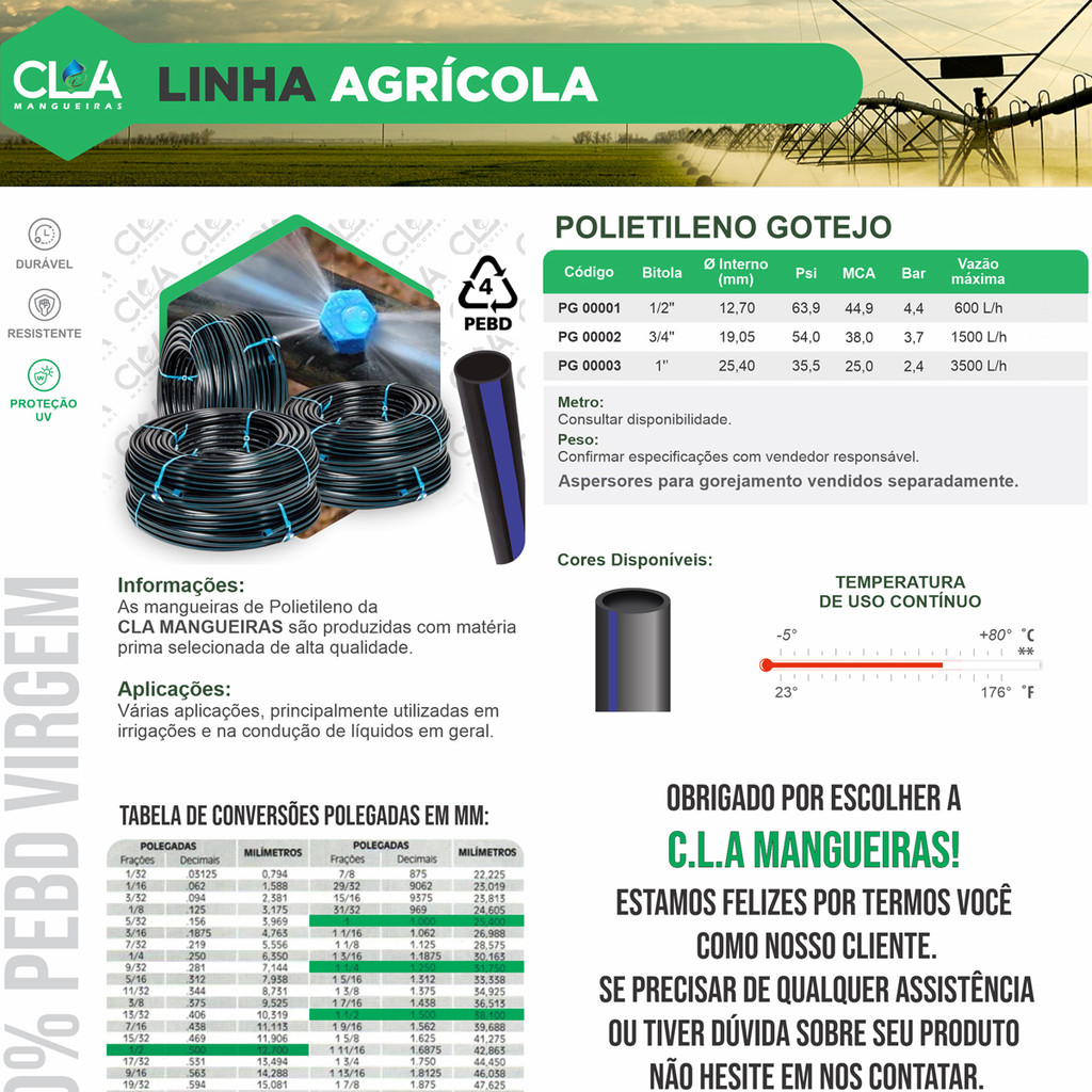 Mangueira de Irrigação 3/4" Reforçada Polietileno Preto Rolo com 50 Metros Selo Azul