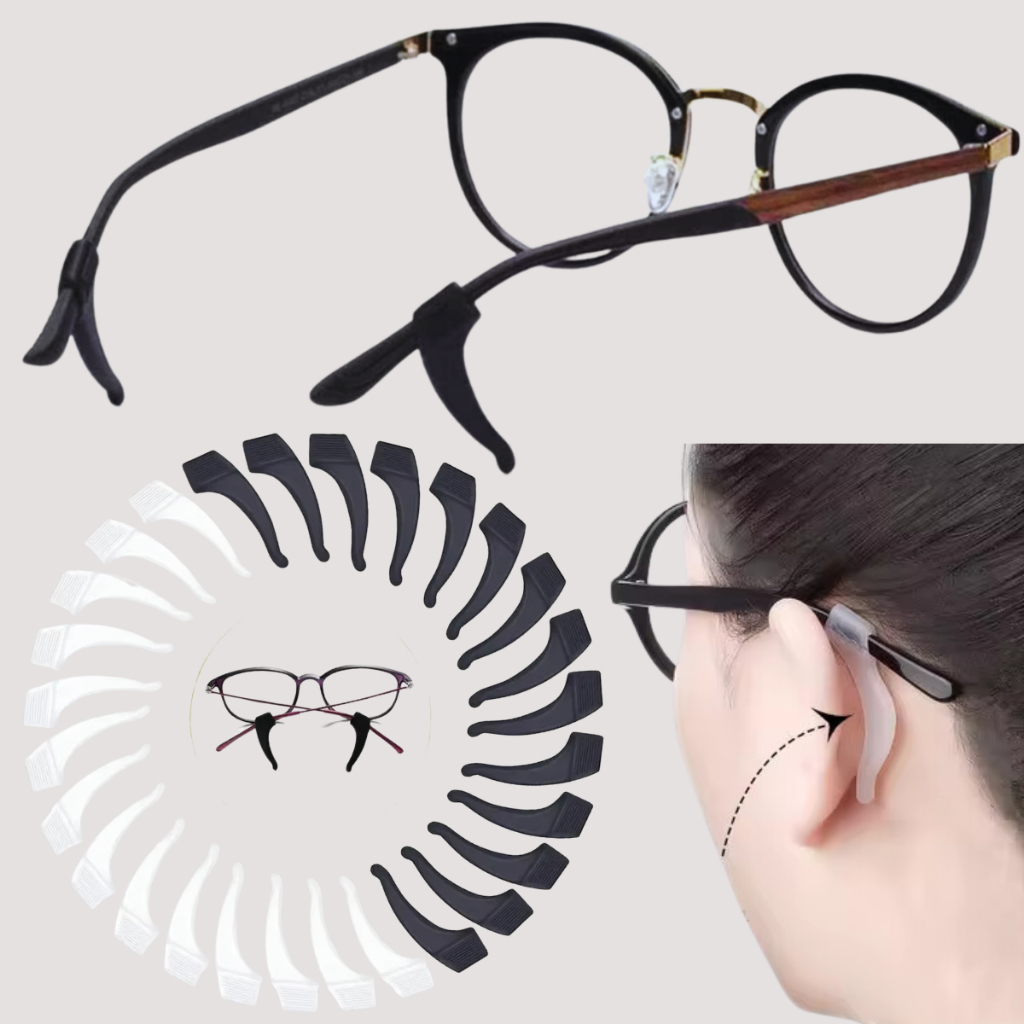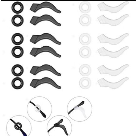 8 gancho bolinha trava de óculos em silicone antiderrapante para Óculos PRETO TRANSPARENTE