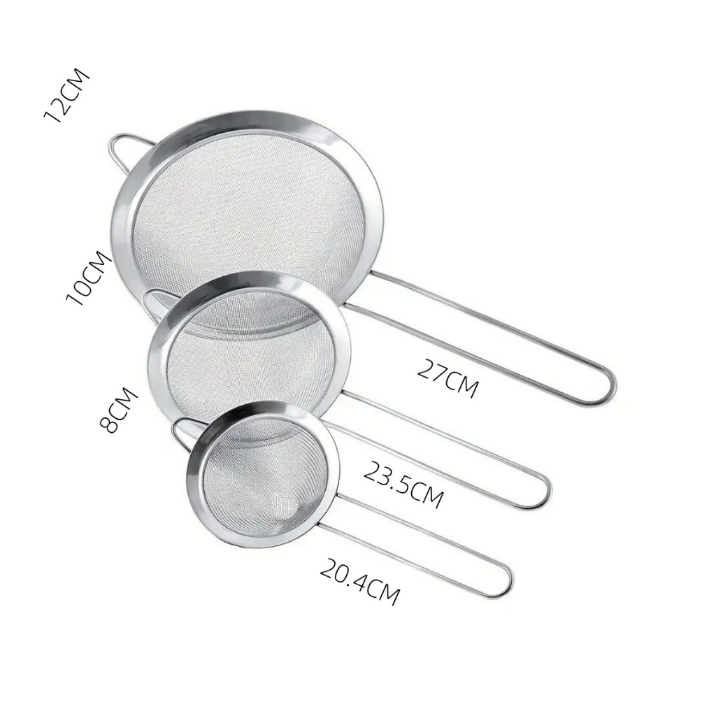Kit 6 Peneira Grandes Coador Em Aço Inox 3 Tamanhos P M G Para Cozinha Promoção