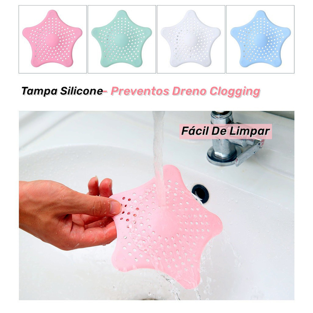 4 Pcs Tampa Silicone Ralo Pia Cozinha Banheiro Estrela 14cm Promoção