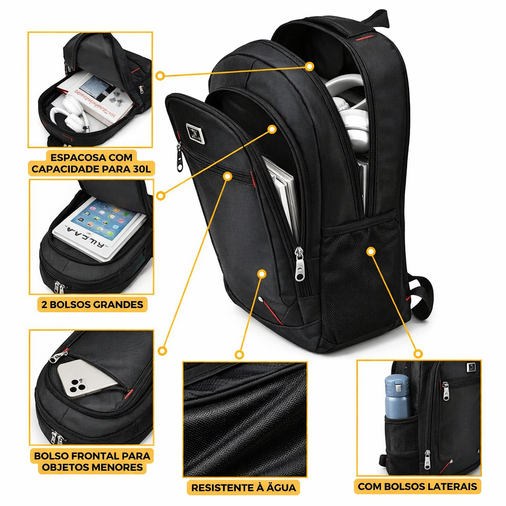Mochila Notebook Escolar Reforçada Básica Unissex Faculdade Masculina Feminina Impermeável