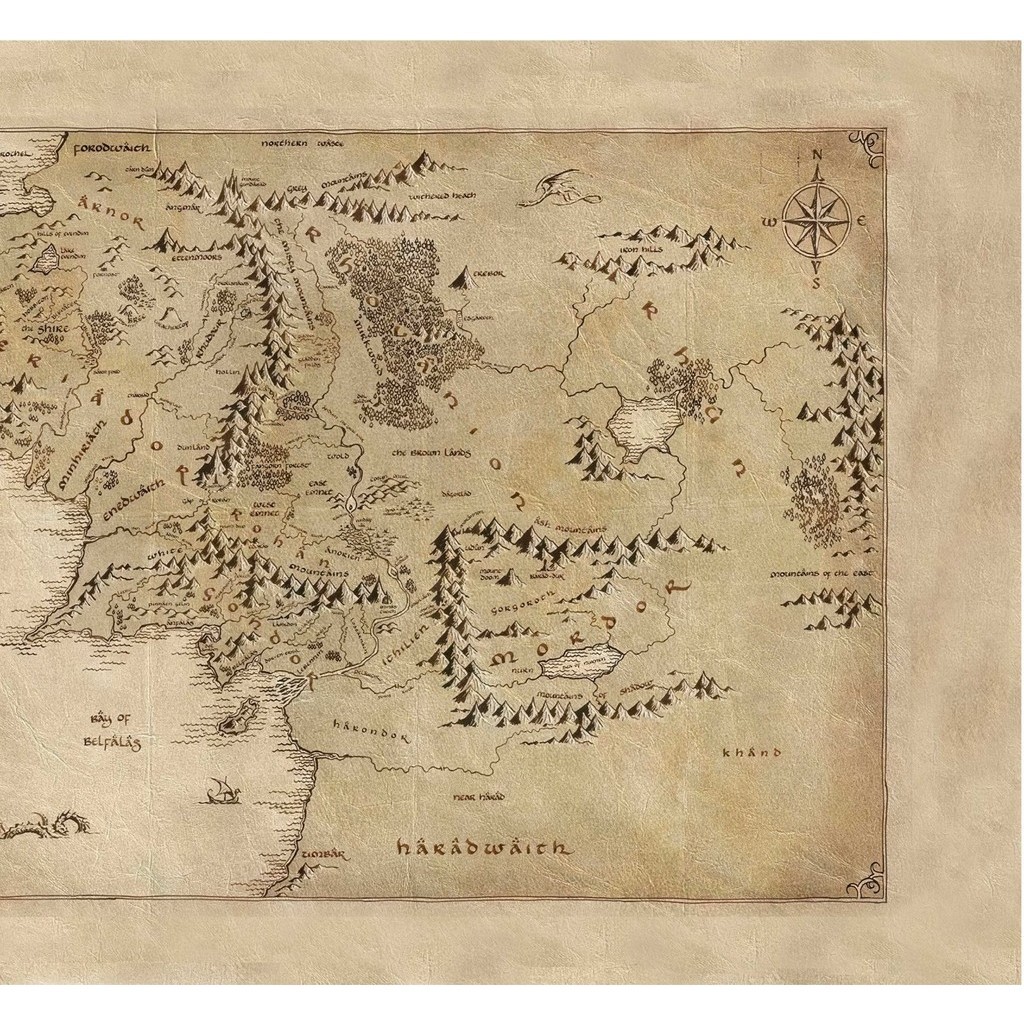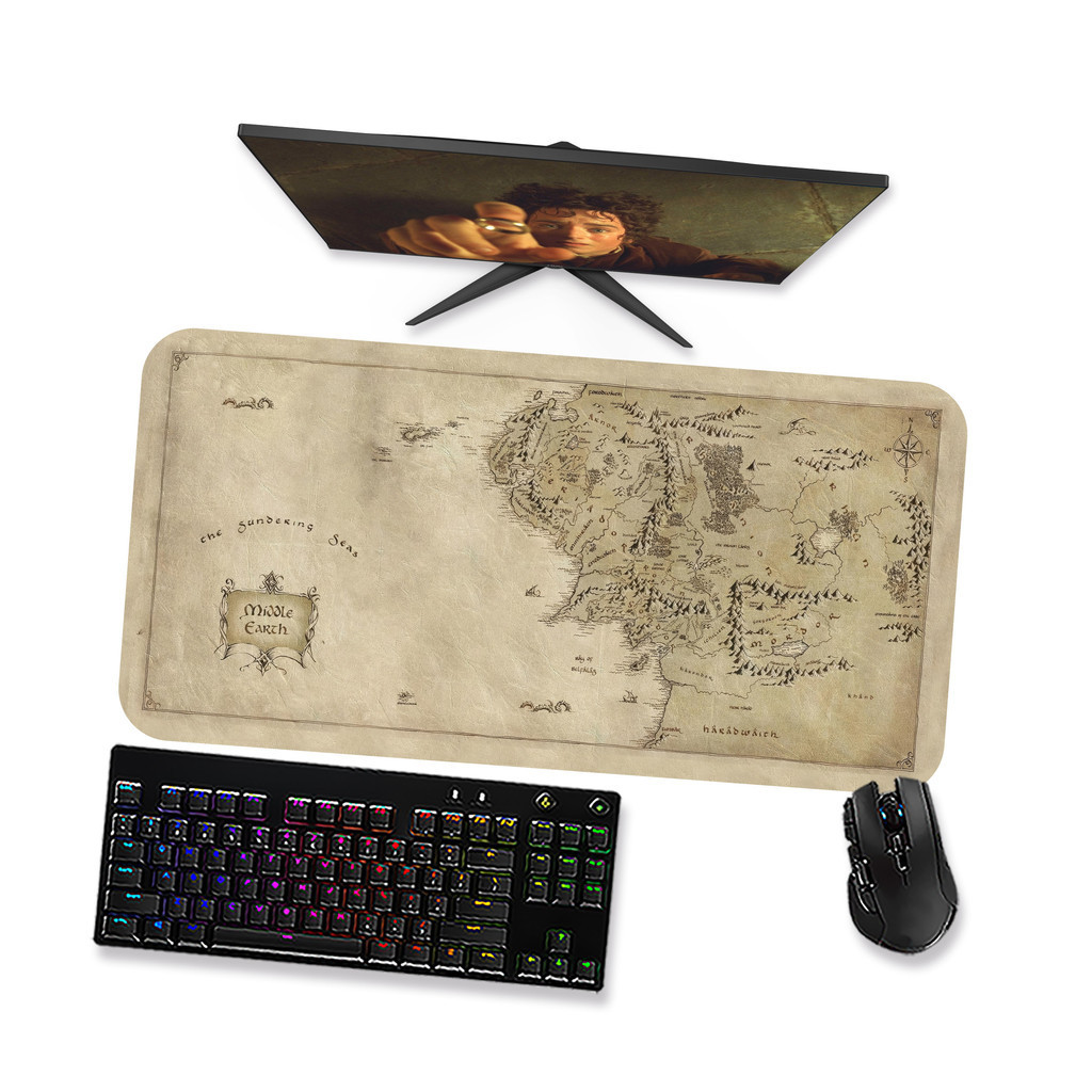Mouse pad Gamer Grande - Senhor dos Anéis Mapa Terra Média 1 - 90x40, 80x40, 60x40 e 70x30