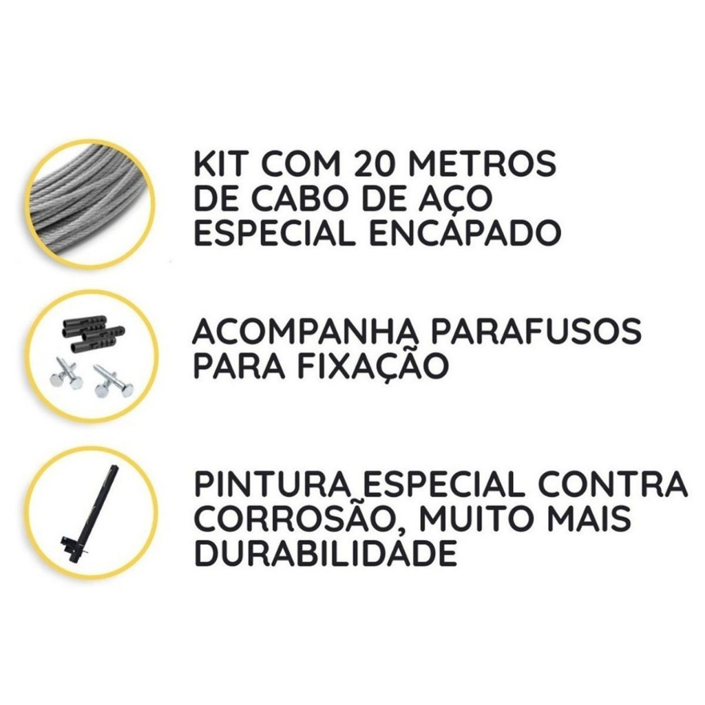 Varal de Parede Retrátil Reforçado em Ferro – Kit de Instalação Incluso / Varal de Roupas Dobrável