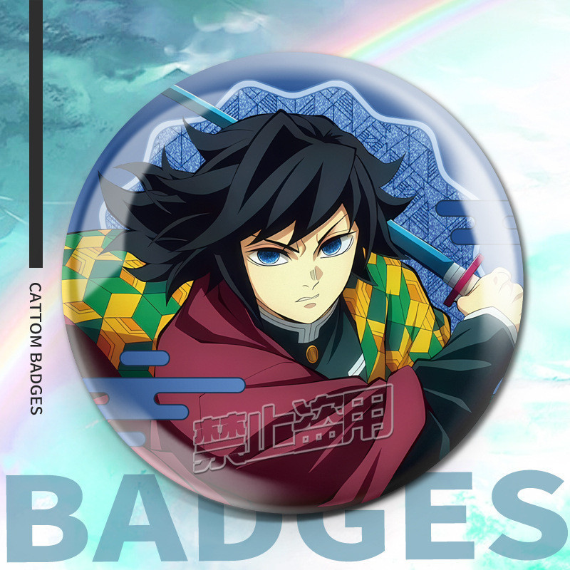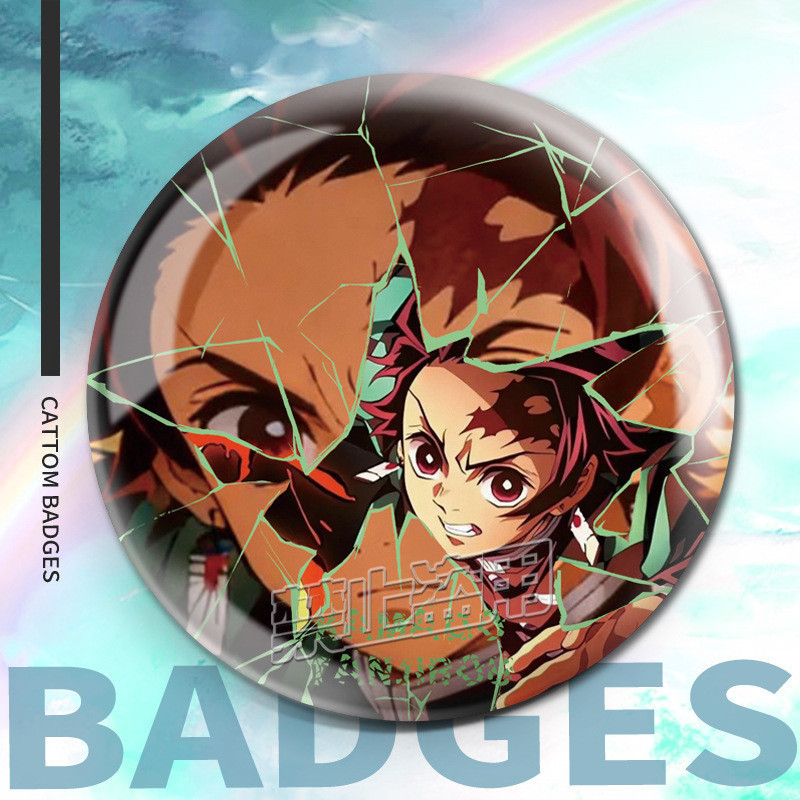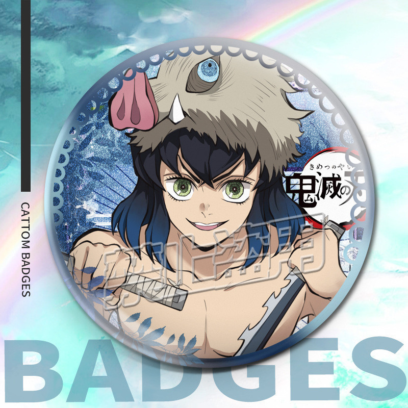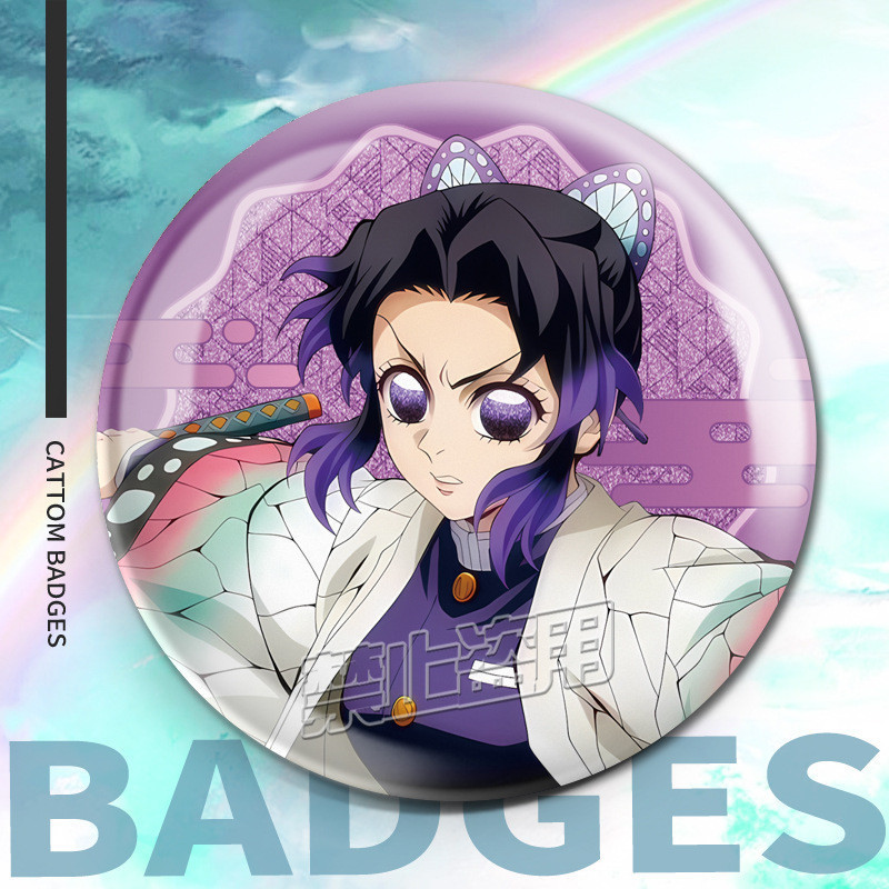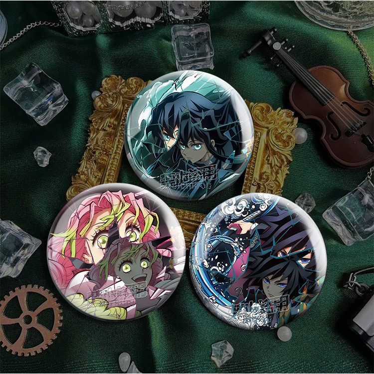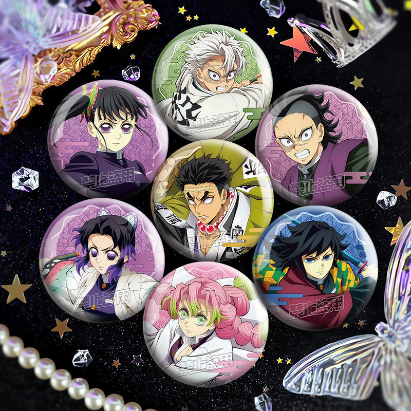 75mm Broches Demon Slayer Holográfico/Nezuko/Shinobu/Mitsuri/Tokito/Tanjiro/Rengoku/bottons/Distintivo/badge/pins/anime