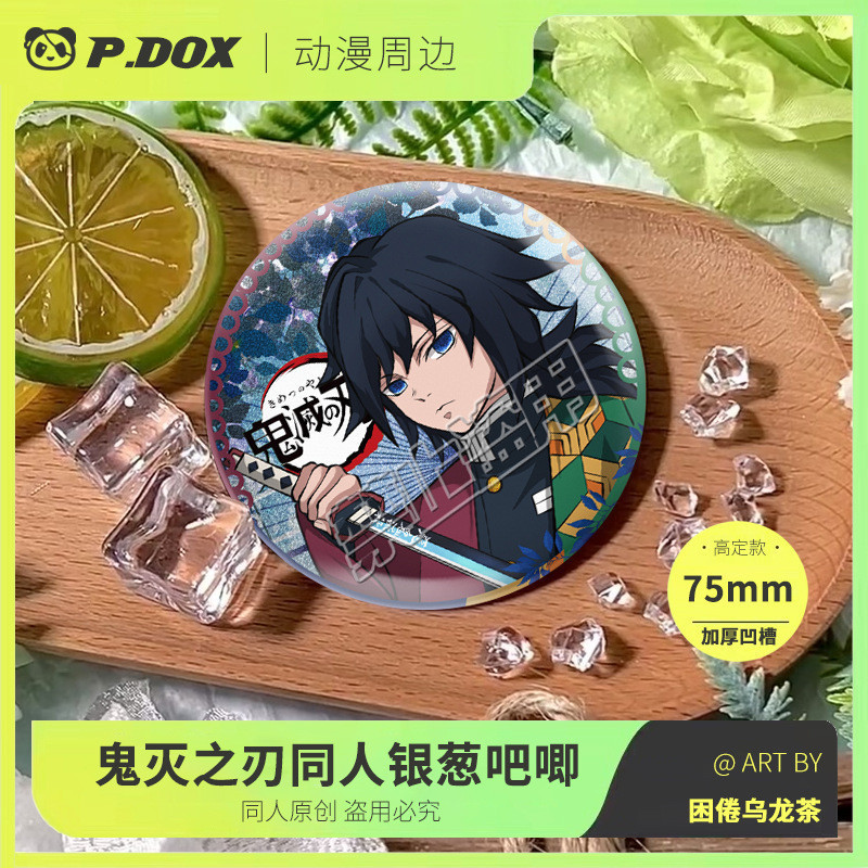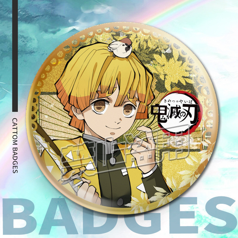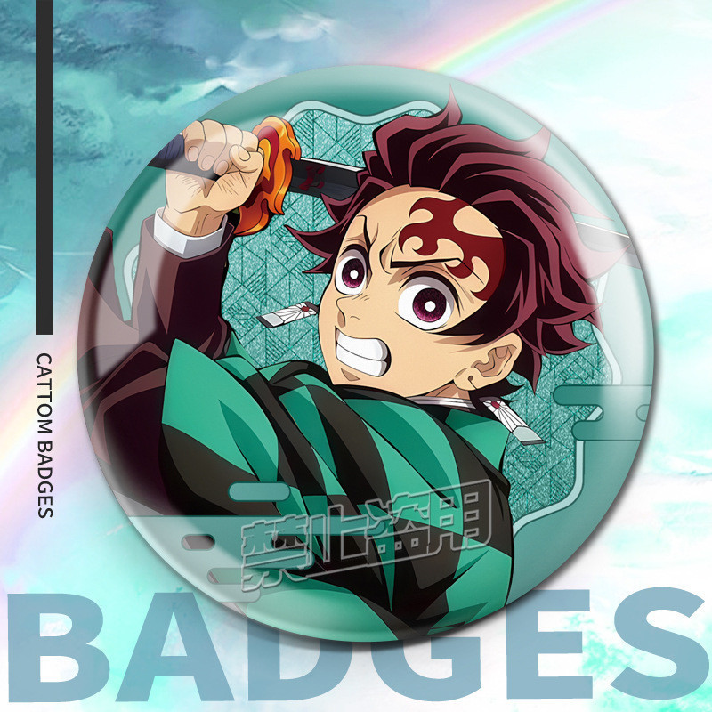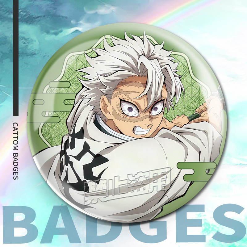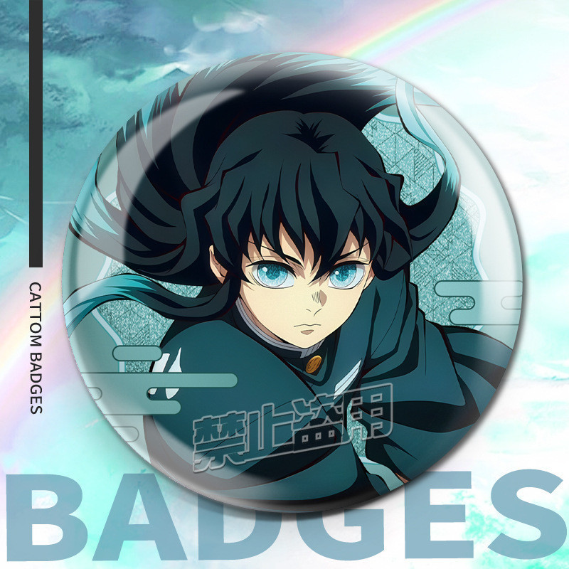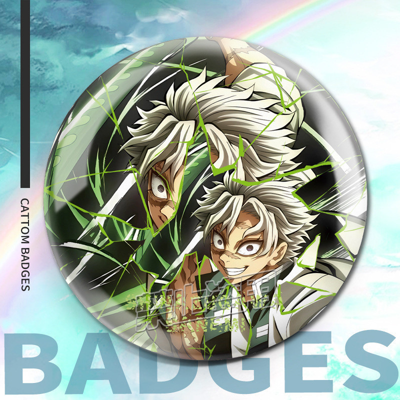 75mm Broches Demon Slayer Holográfico/Nezuko/Shinobu/Mitsuri/Tokito/Tanjiro/Rengoku/bottons/Distintivo/badge/pins/anime