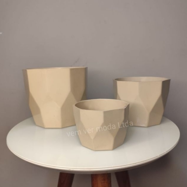 kit 3 Vasos Plantas Decorativos Cachepot Facetado plástico com Caixa