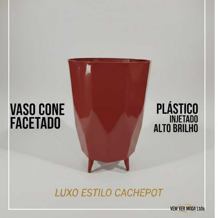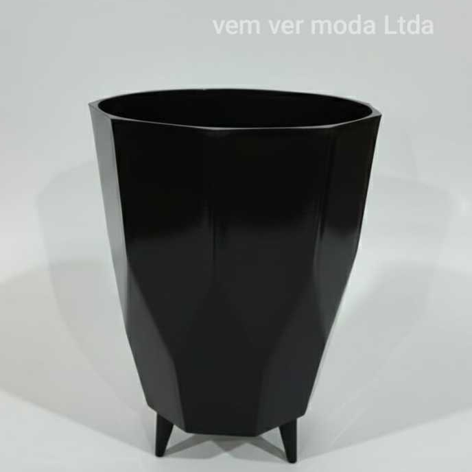Vaso para Planta Coluna Facetado 34x24 Cachepo Decorativo Alto Brilho Polietileno Resistente Moderno
